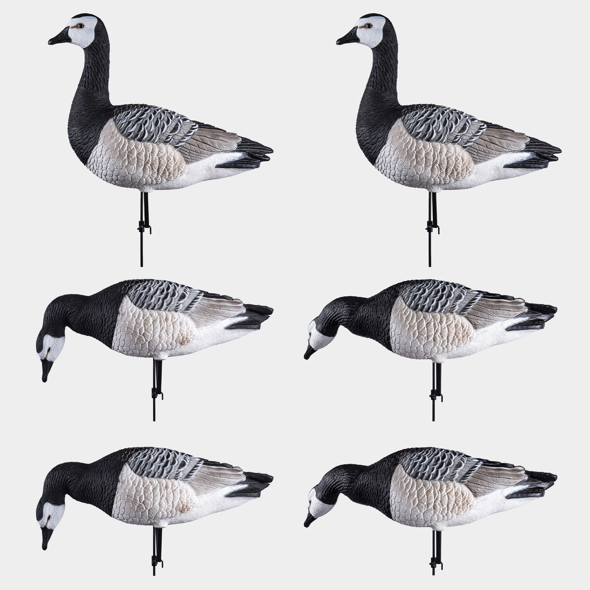 Готовый набор для мгновенного эффекта. В комплекте 6 чучел в разных позах: 2 сторожа, 2 кормящихся, 2 ищущих еду. Такая группа выглядит естественно и уверенно привлекает пролетающие стаи.