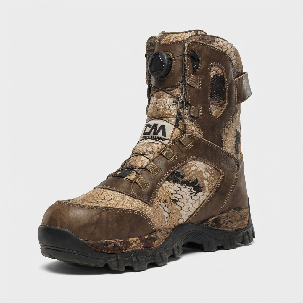 Корпус ботинка выполнен из прочного материала Oxford 900D с усилениями из премиальной кожи с камуфлированной текстурой — это повышает износостойкость и маскировочные свойства. Влагозащитная мембрана не пропускает воду снаружи, но выводит испарения изнутри, чтобы ноги оставались сухими во время активной ходьбы. Утеплитель 3M Thinsulate 400 g поддерживает комфортный температурный режим: в динамике примерно от –10 °C до 0 °C, в статике около 0…+10 °C.