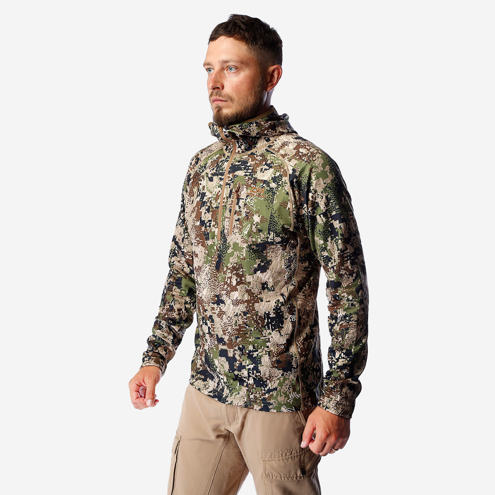Капюшон служит дополнительным согревающим элементом во время ночёвок на природе и помогает оставаться незаметным для дичи. Нагрудный карман на молнии удобен для хранения мелочей, а глубокий молниевый вырез позволяет быстро сбросить лишнее тепло при необходимости.
