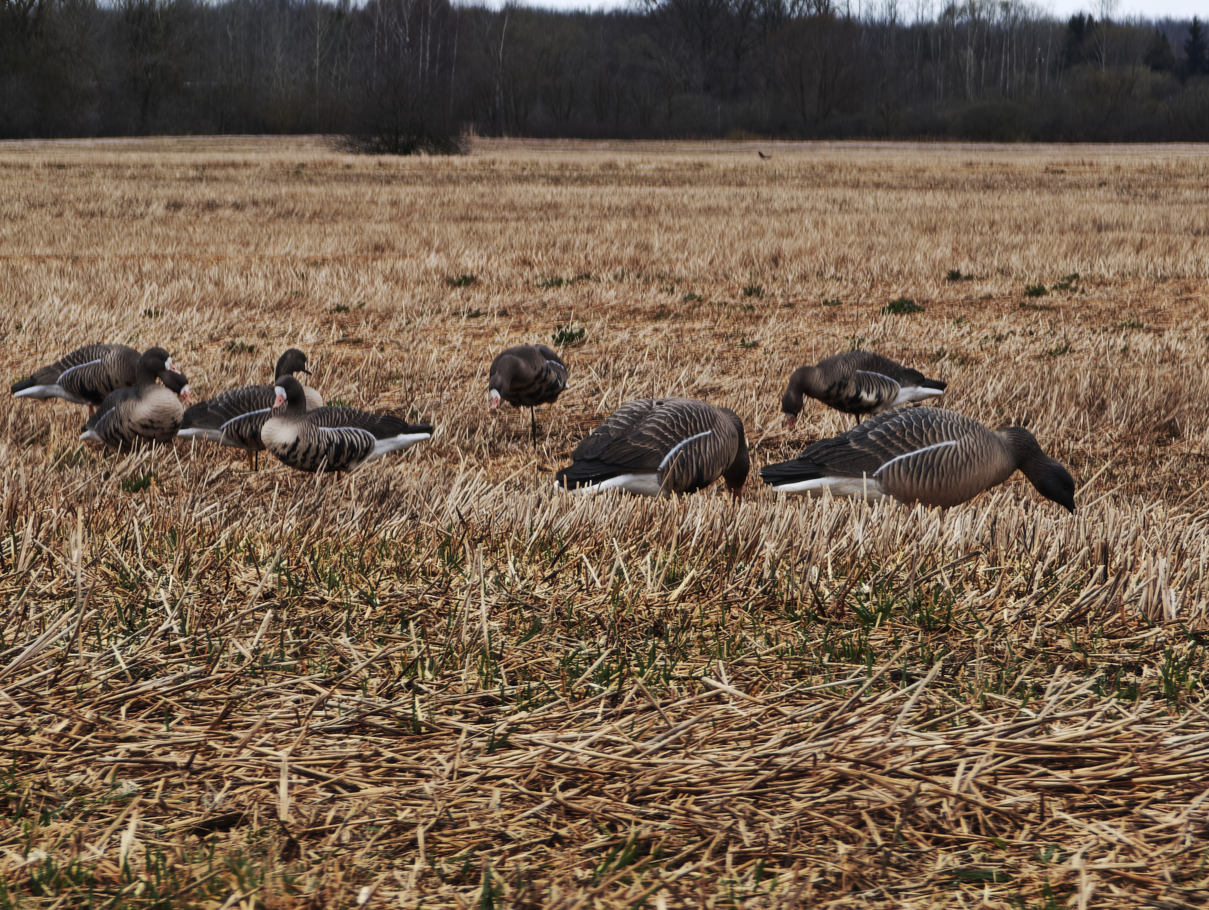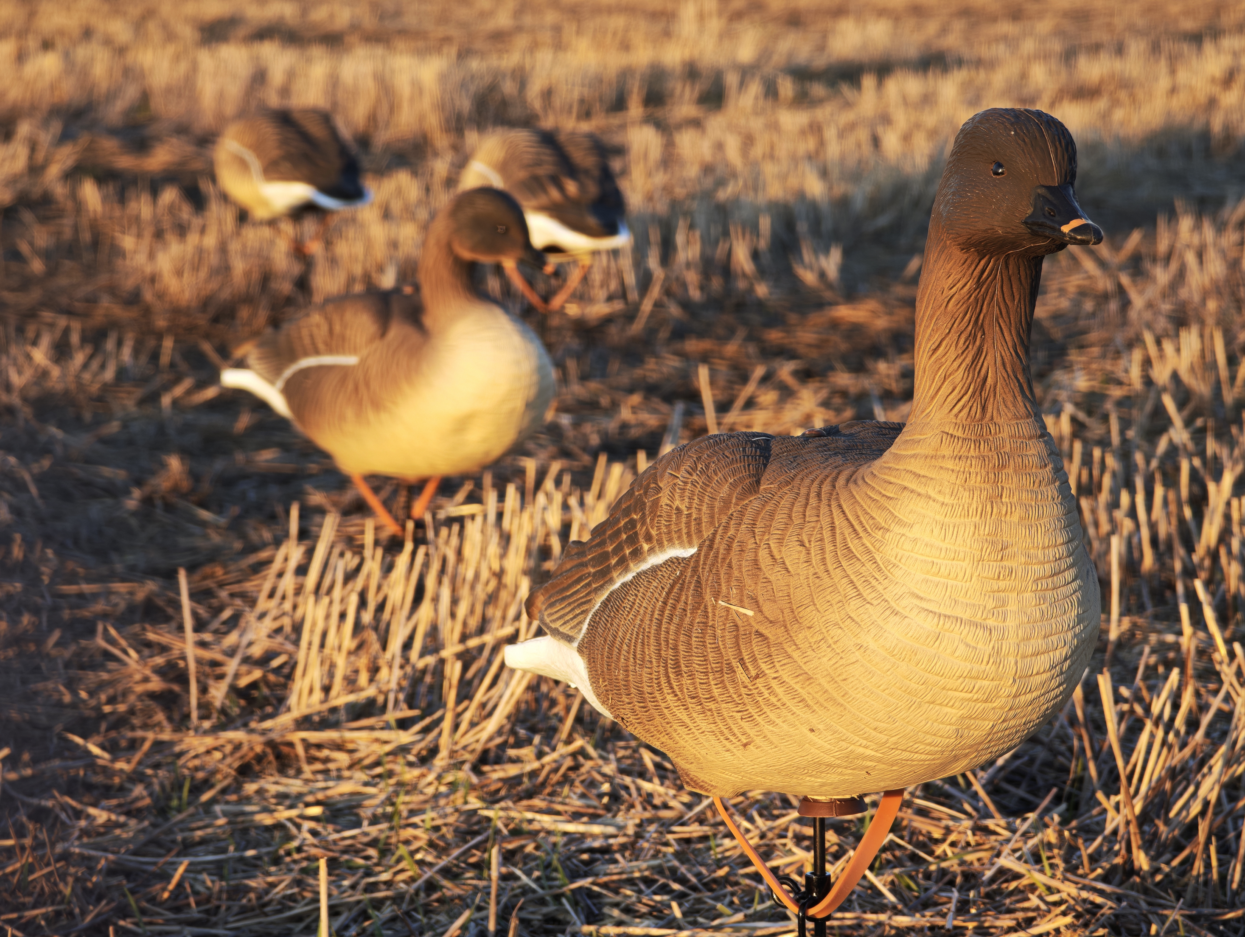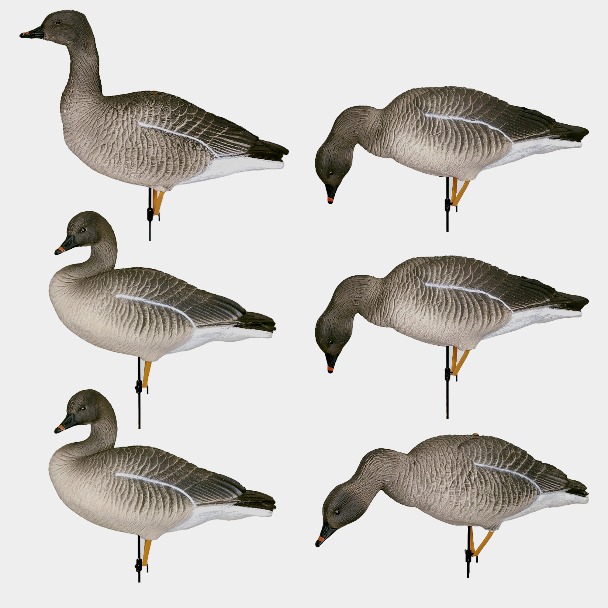6 чучел гуся гуменника (3 кормящихся, 2 отдыхающих, 1 сторожевой) с предустановленными хлястиками и телескопическими втулками.