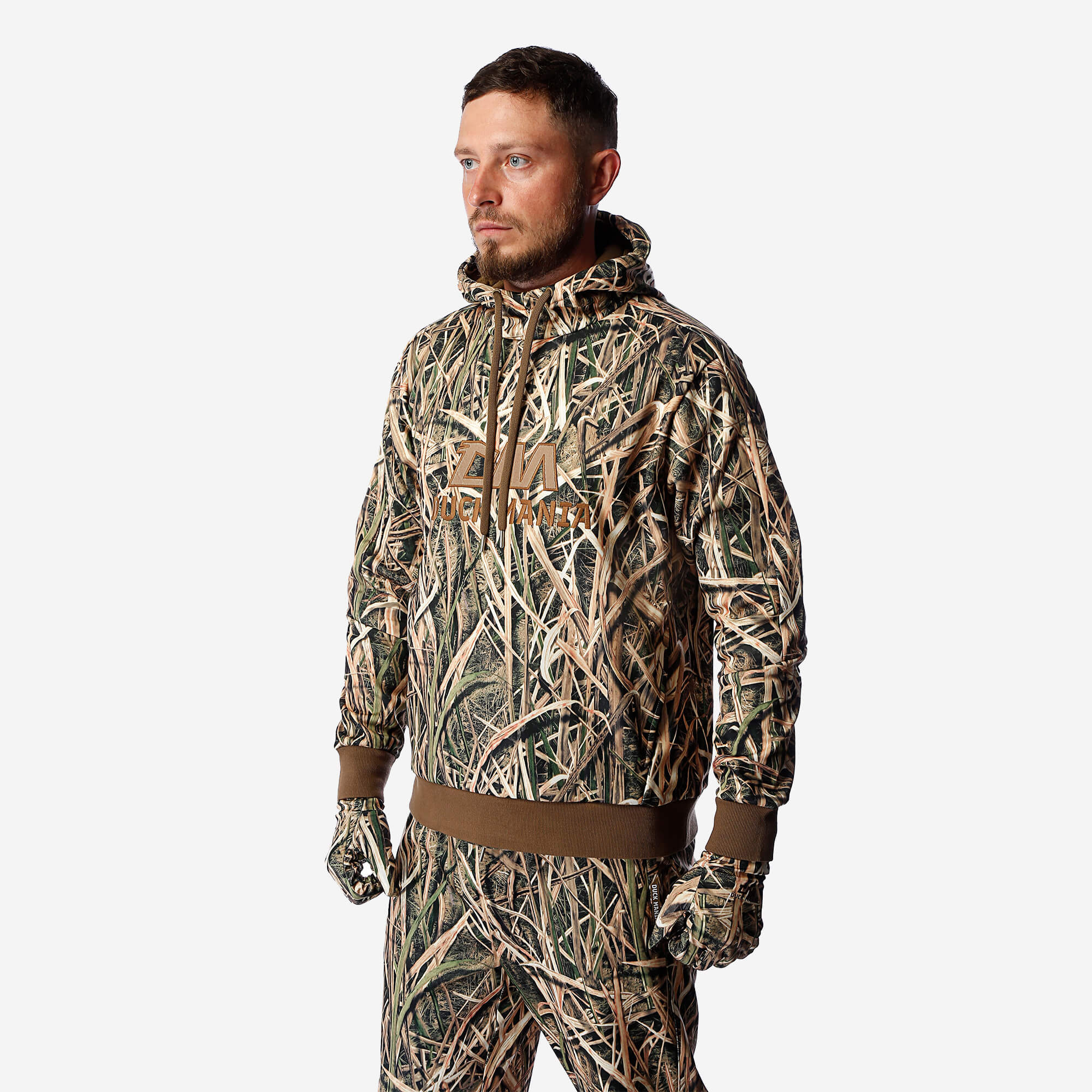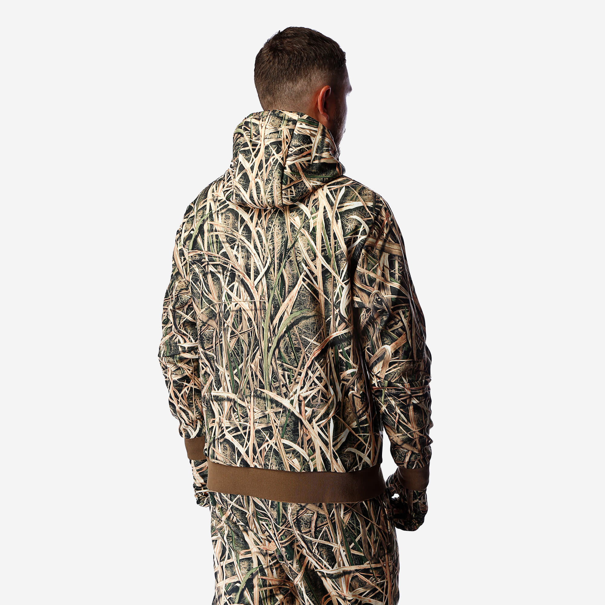 Объёмный 3D-капюшон с фирменной подкладкой Duck Mania усиливает маскировку и даёт дополнительную защиту от непогоды. Манжеты и шнуровка подобраны под цвет камуфляжа — всё продумано до мелочей.