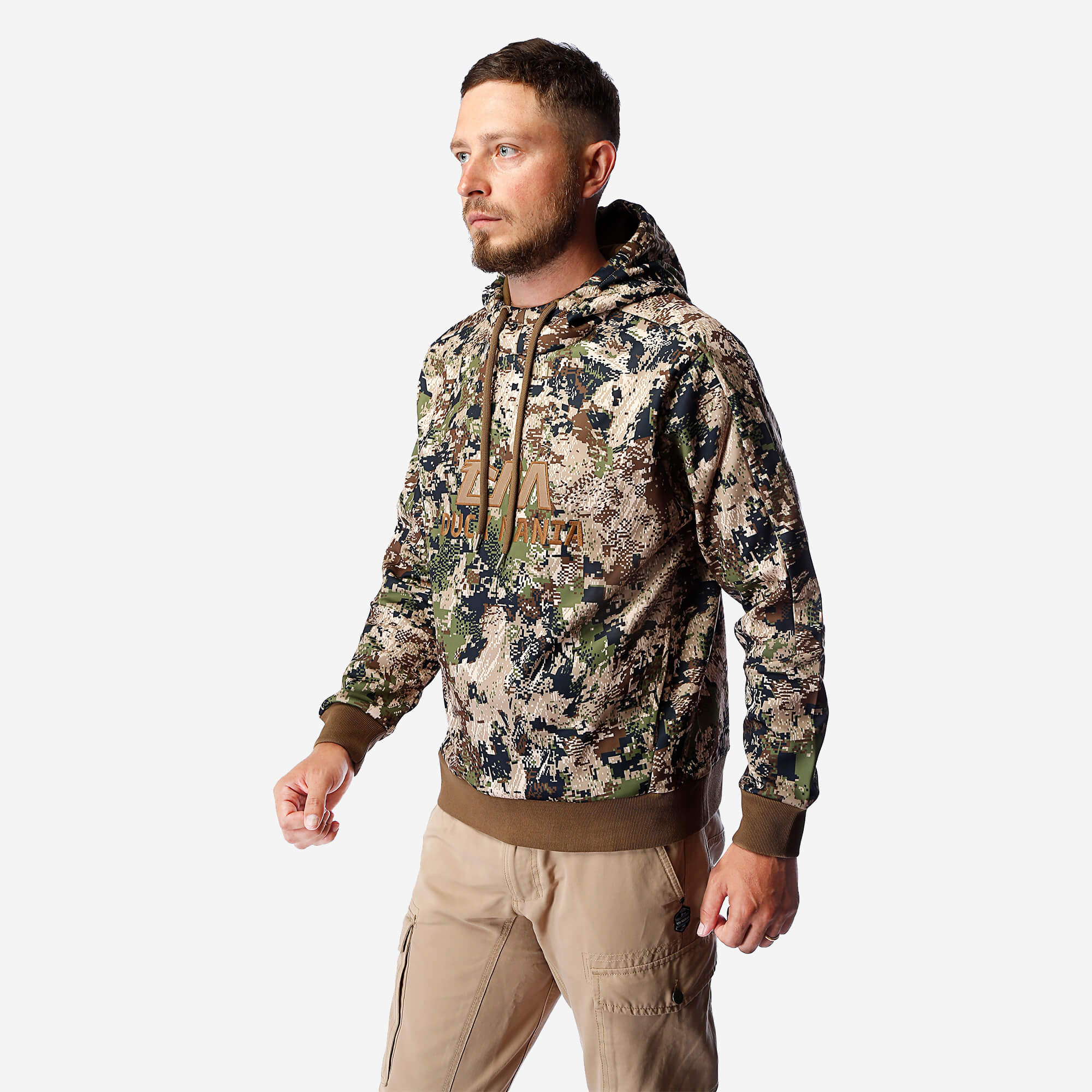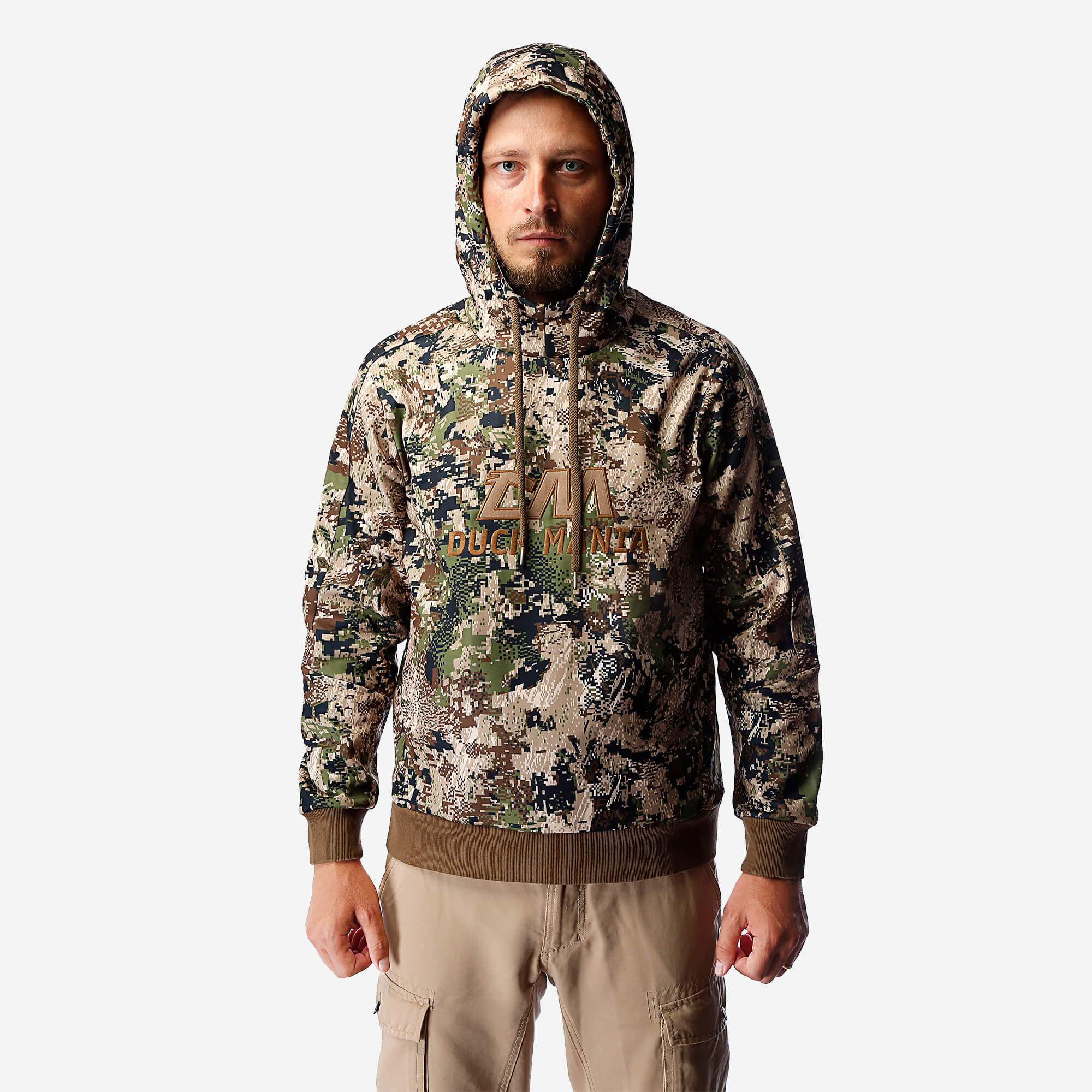 Объёмный 3D-капюшон с фирменной подкладкой Duck Mania усиливает маскировку и даёт дополнительную защиту от непогоды. Манжеты и шнуровка подобраны под цвет камуфляжа — всё продумано до мелочей.