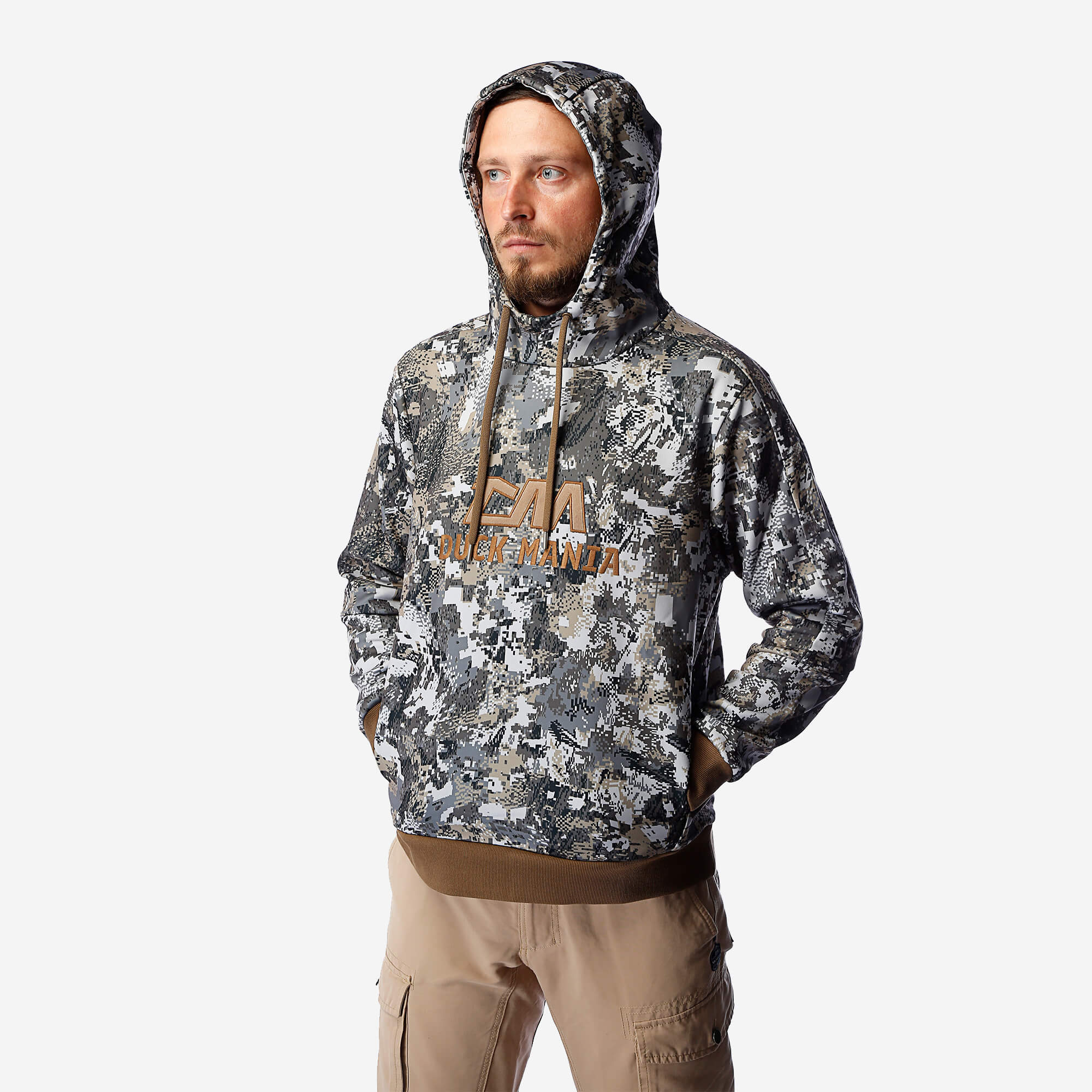 Объёмный 3D-капюшон с фирменной подкладкой Duck Mania усиливает маскировку и даёт дополнительную защиту от непогоды. Манжеты и шнуровка подобраны под цвет камуфляжа — всё продумано до мелочей.
