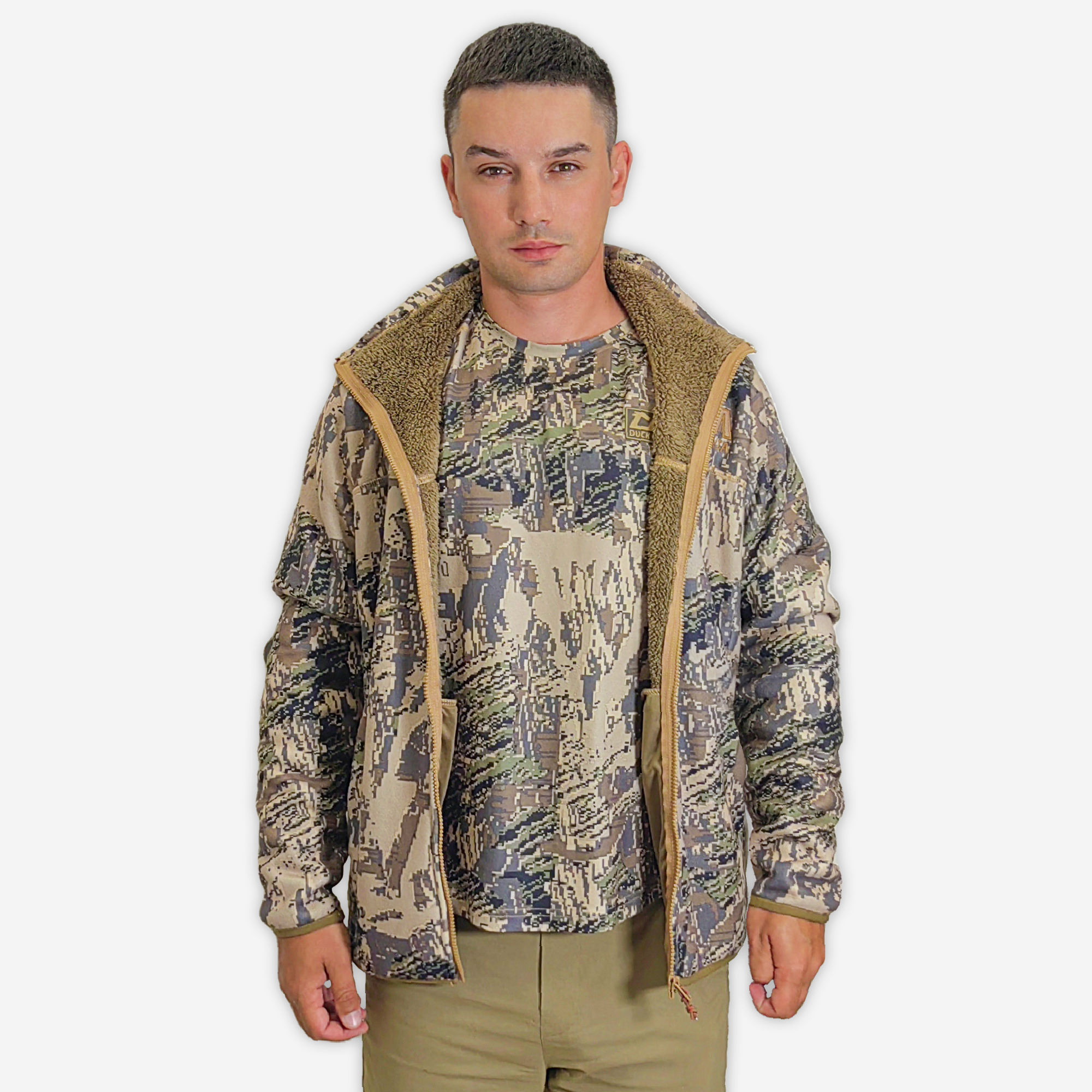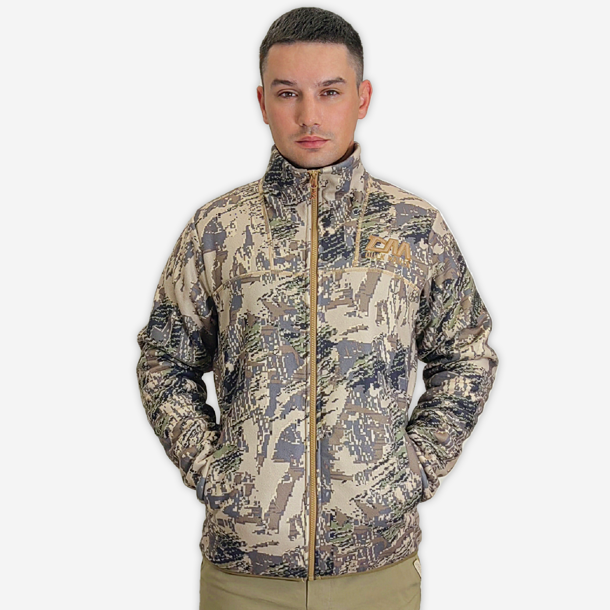 Кофта Max — это тёплый утепляющий слой класса «Комфорт», который идеально работает между термобельём и мембранной курткой, не добавляя лишнего объёма и не сковывая движения. Внешняя сторона выполнена из гладкого флиса, на который легко наносится чёткий камуфлированный рисунок, а внутренняя сторона из «арктик‑флиса» с длинным ворсом обеспечивает дополнительное тепло и уют.