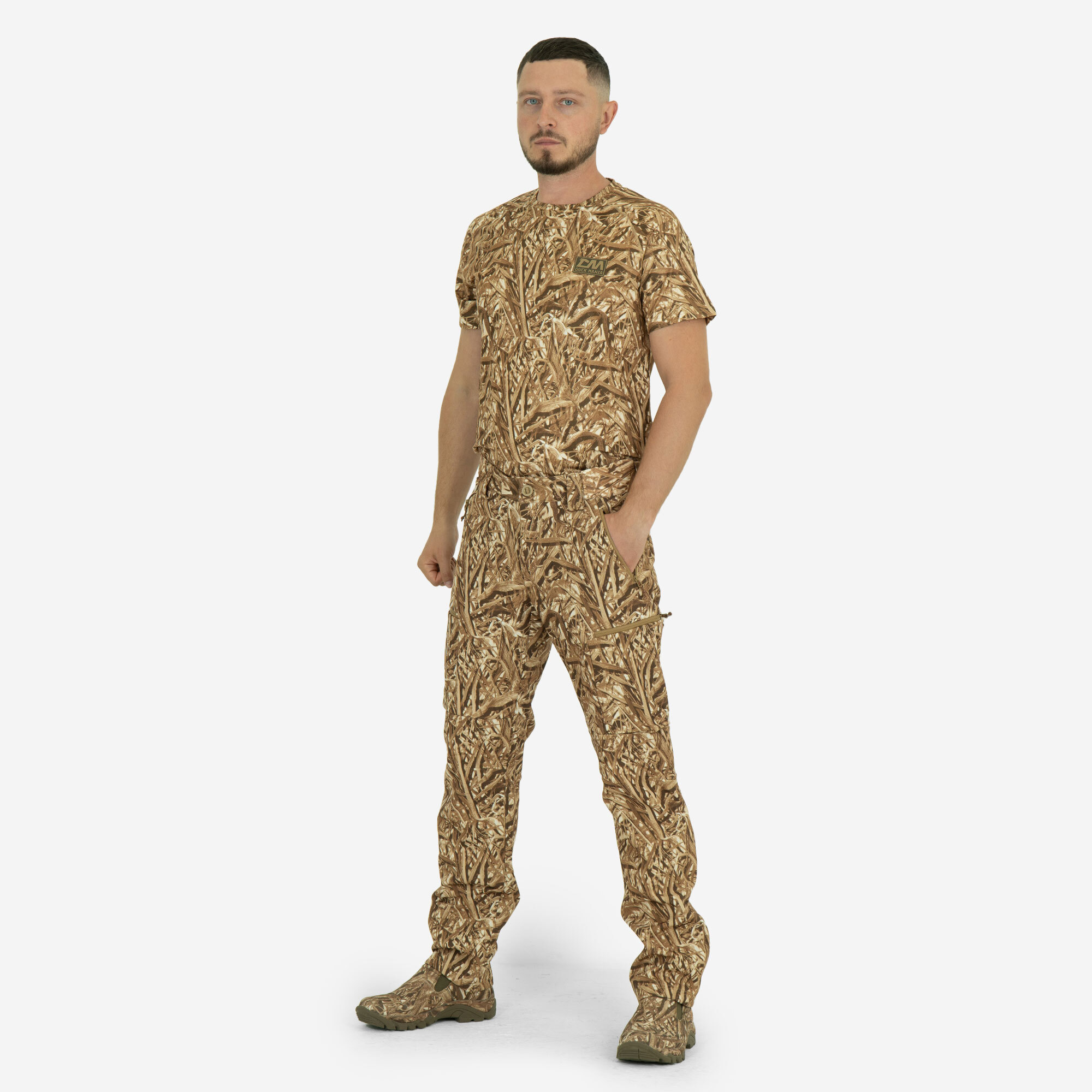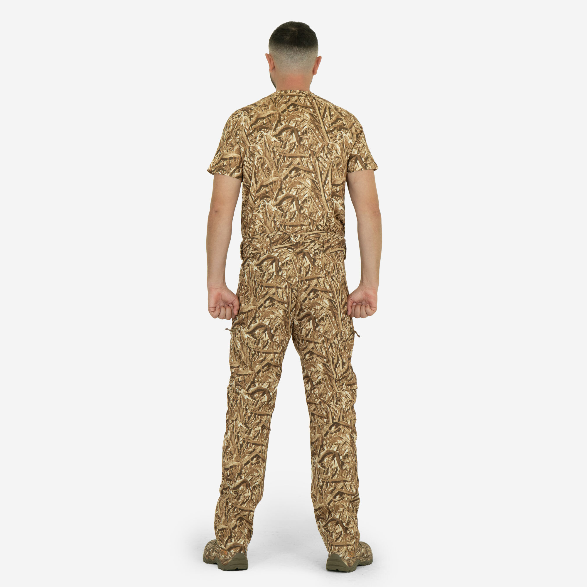 Конструктивные особенности штанов: проклейка шва от низа до колена, для защиты при хождении по траве, 4 кармана на водостойких молниях, высокий пояс, шлевки под широкий ремень и эластичная вставка для регулировки объема.