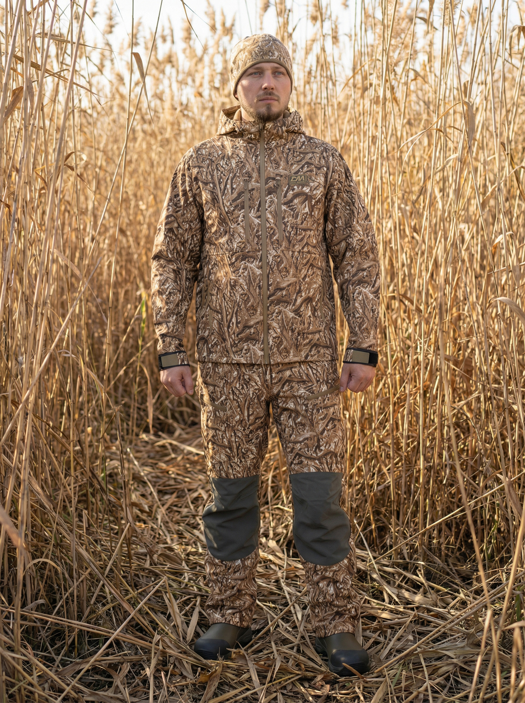 Костюм «DOOM» - это современный софтшелл виндстопер для защиты от ветра, влаги и холода. 3L трехслойная ткань с 4 сторонней растяжимостью: внутри флисовый утепляющий слой с плетением waffle отводит лишнее тепло при высокой активности и сохраняет при низкой.