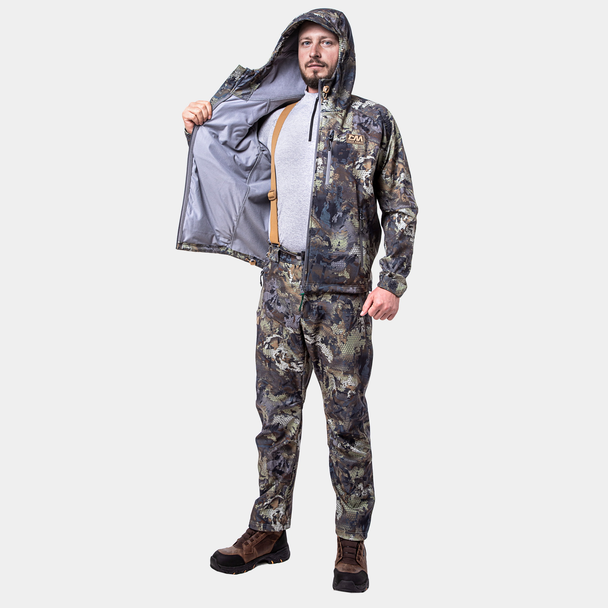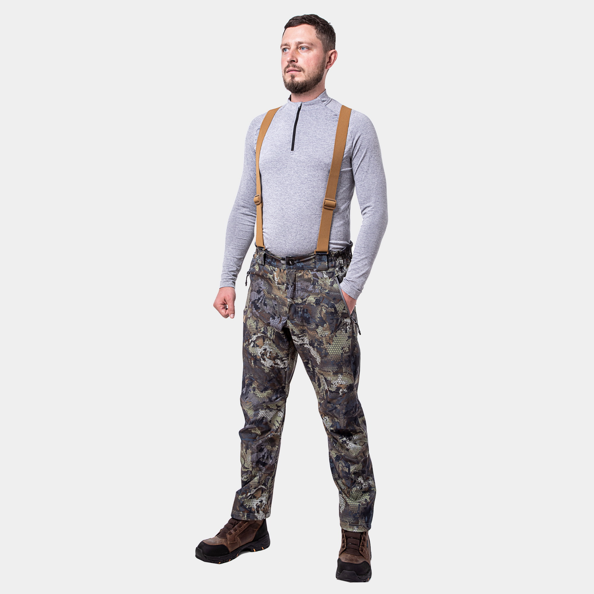 Надежная защита от ветра, влаги и холода — комфорт даже при длительной охоте в суровых условиях. - Трехслойная 3L-ткань с внутренним флисовым утеплением обеспечивает тепло и дышимость. - Плетение *waffle* эффективно отводит лишнее тепло при активности и сохраняет его при низких температурах. - Лямки для удобной и надежной посадки, предотвращают сползание во время движения. - Защита спины защищает от холода и повреждений при сидении или приседаниях. - Клапаны для проветривания позволяют регулировать микроклимат и избавляться от излишней влаги. - Варианты материалов верха: