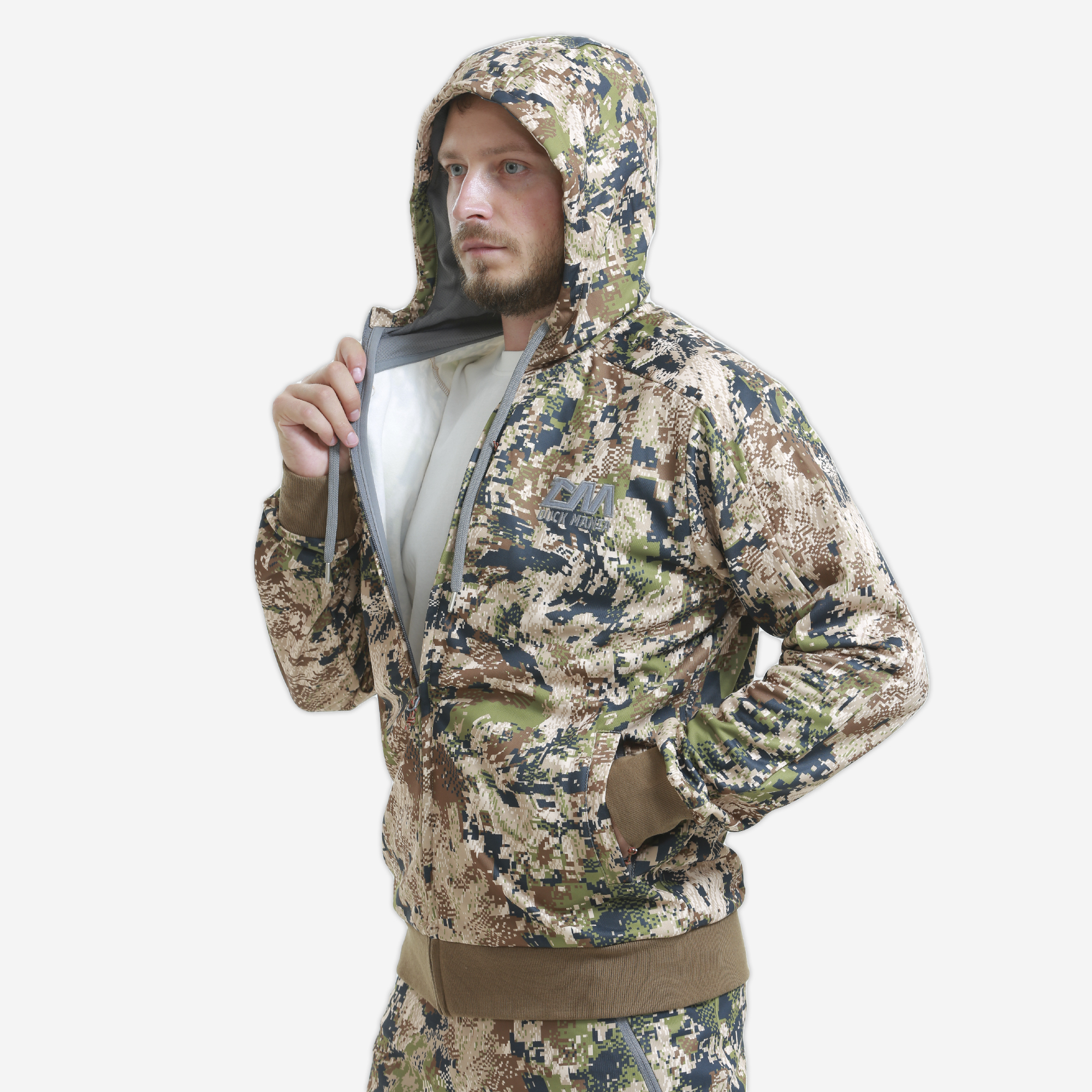 Костюм, спортивного покроя «Nevada» разработан для ношения как самостоятельный элемент, также может быть использован как внутренний слой, при необходимости утепления. Худи свободного спортивного кроя и рукав реглан без плечевого шва дает максимум свободы движения и красивую посадку по телу. Центральная «молния», 2 вместительных кармана на «молнии» по бокам и один нагрудный. Трикотажный материал из полиэфирных волокон высокой плотности с плетением WIND PROTECT KNIT для защиты от ветра и легкого дождя (проверено в полевых условиях). Внутренняя сторона ткани имеет ворс для обеспечения хороших тактильных качеств и утепляющего эффекта, при этом материал «дышит» и хорошо пропускает испарения от тела наружу. Объемный 3D капюшон с подкладкой в фирменном цвете Duck Mania для обеспечения маскировки, манжеты и веревочка для регулировки капюшона под цвет камуфляжа. Штаны также выполнены в спортивном стиле, имеют 4 кармана на «молнии» и шлевки на поясе для возможности одевать ремень.