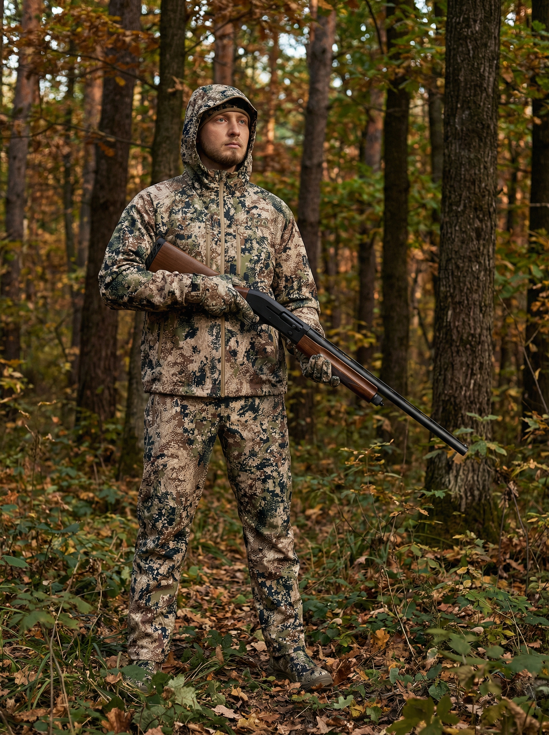 Надежная защита от ветра, влаги и холода — идеально подходит для охоты в любых погодных условиях. - Трехслойная 3L-ткань обеспечивает баланс теплоизоляции и дышащих свойств. - Внутренний флисовый слой с плетением *waffle*: - Отводит лишнее тепло при активных движениях. - Сохраняет комфорт и тепло при низких температурах. - Рукав реглан не стесняет движений, что особенно важно при активной стрельбе. - Анатомический капюшон защищает голову от ветра и влаги, не ограничивая обзор. - 4 кармана на влагостойких молниях сохраняют вещи в сухости и порядке. - Варианты материалов верха: