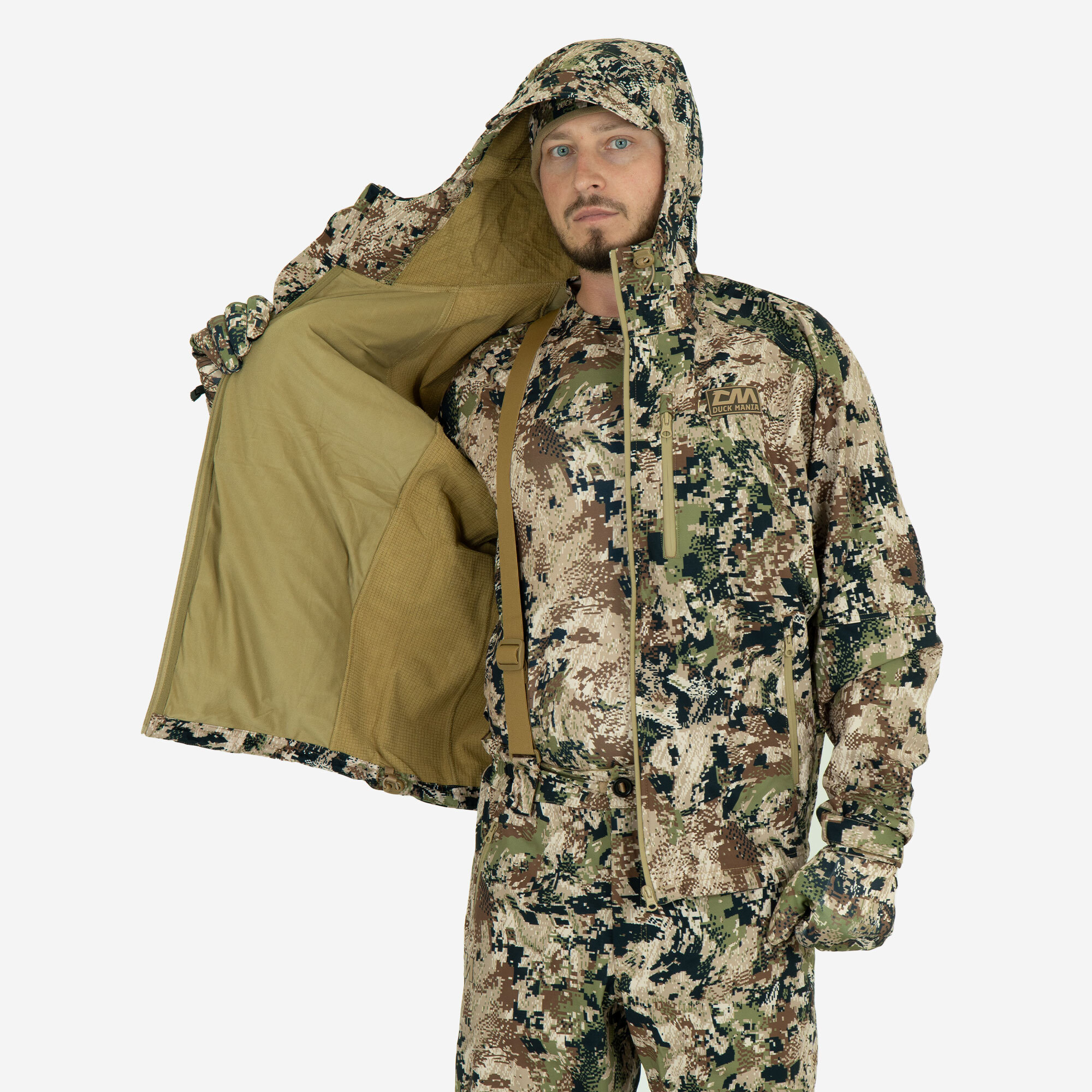 Костюм «Тiger PRO» - это проверенный временем и многочисленными охотами виндстопер, дающий уверенную защиту от ветра, влаги и холода. 3L трехслойная ткань: внутри флисовый утепляющий слой с плетением waffle отводит лишнее тепло при высокой активности и сохраняет при низкой.