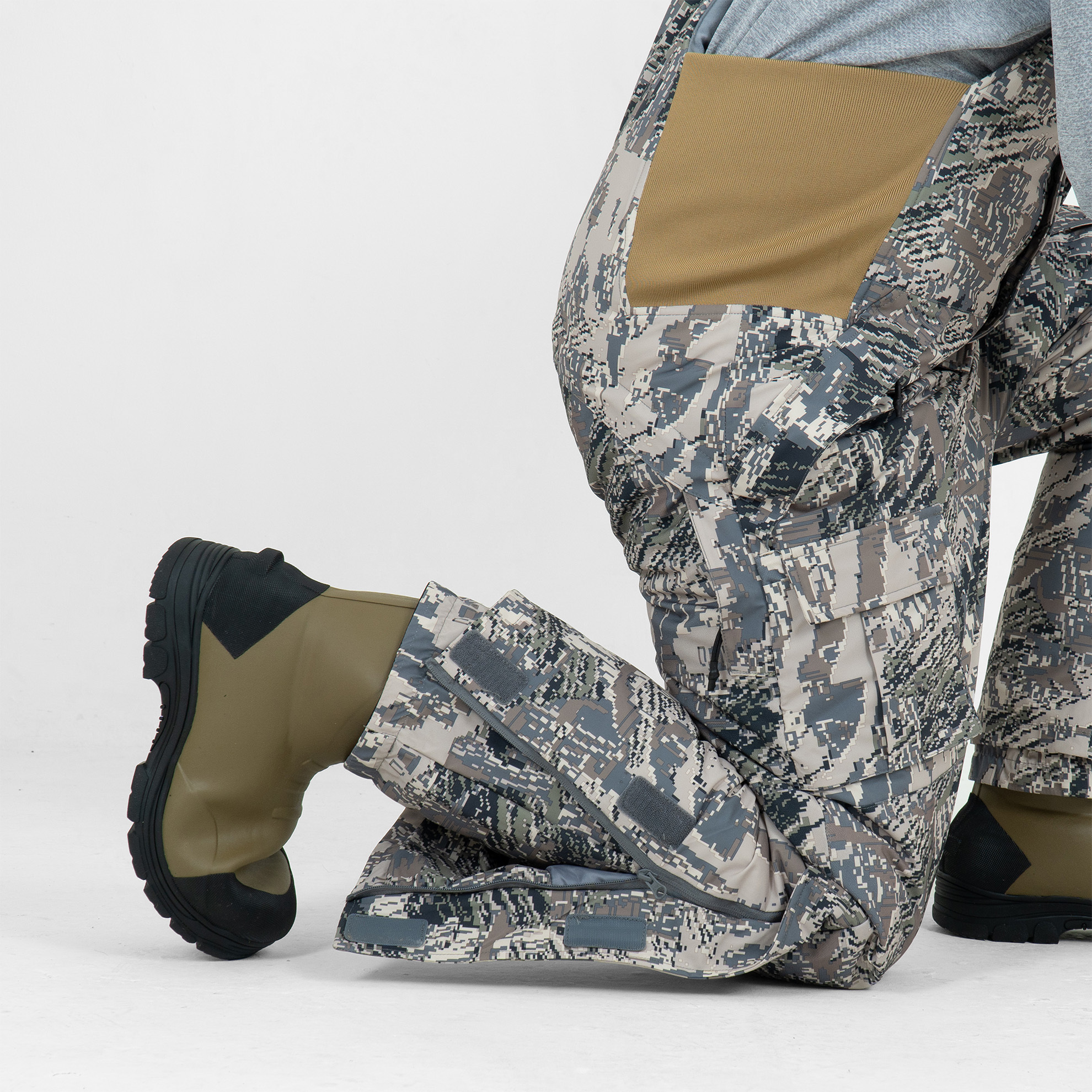 - Колени усилены износостойкой тканью в цвет камуфляжа костюма;