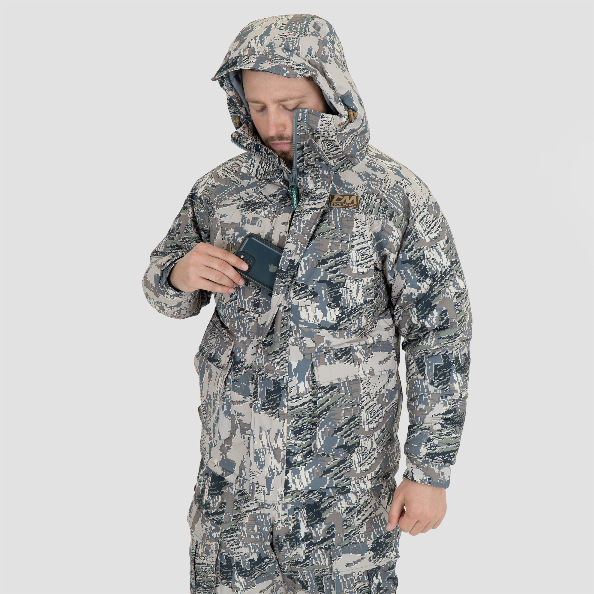 - Теплый нагрудный карман под ветрозащитной планкой, позволяющий держать телефон в тепле без растегивания основной молнии куртки;
