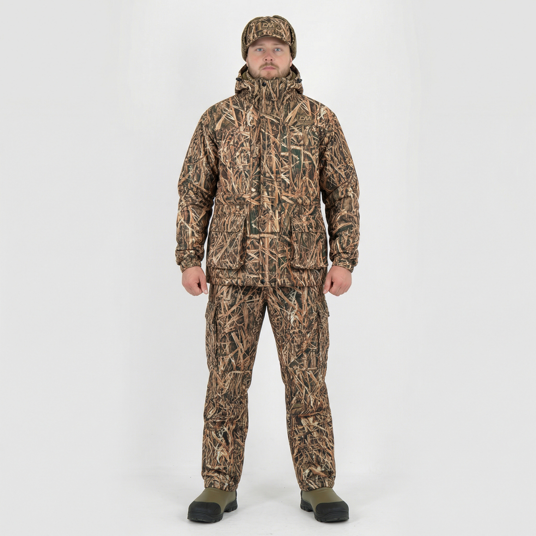 Верх костюма выполнен из SilentTex — функционального полиэстера с микроворсом, который минимизирует шум при движении, что особенно важно для охоты. Утеплитель ThermoLoft обеспечивает отличную теплоизоляцию при малой толщине и весе. Водостойкая 3L мембрана Duck Mania SILVER (10 000/10 000) и проклеенные швы гарантируют надежную защиту от влаги.