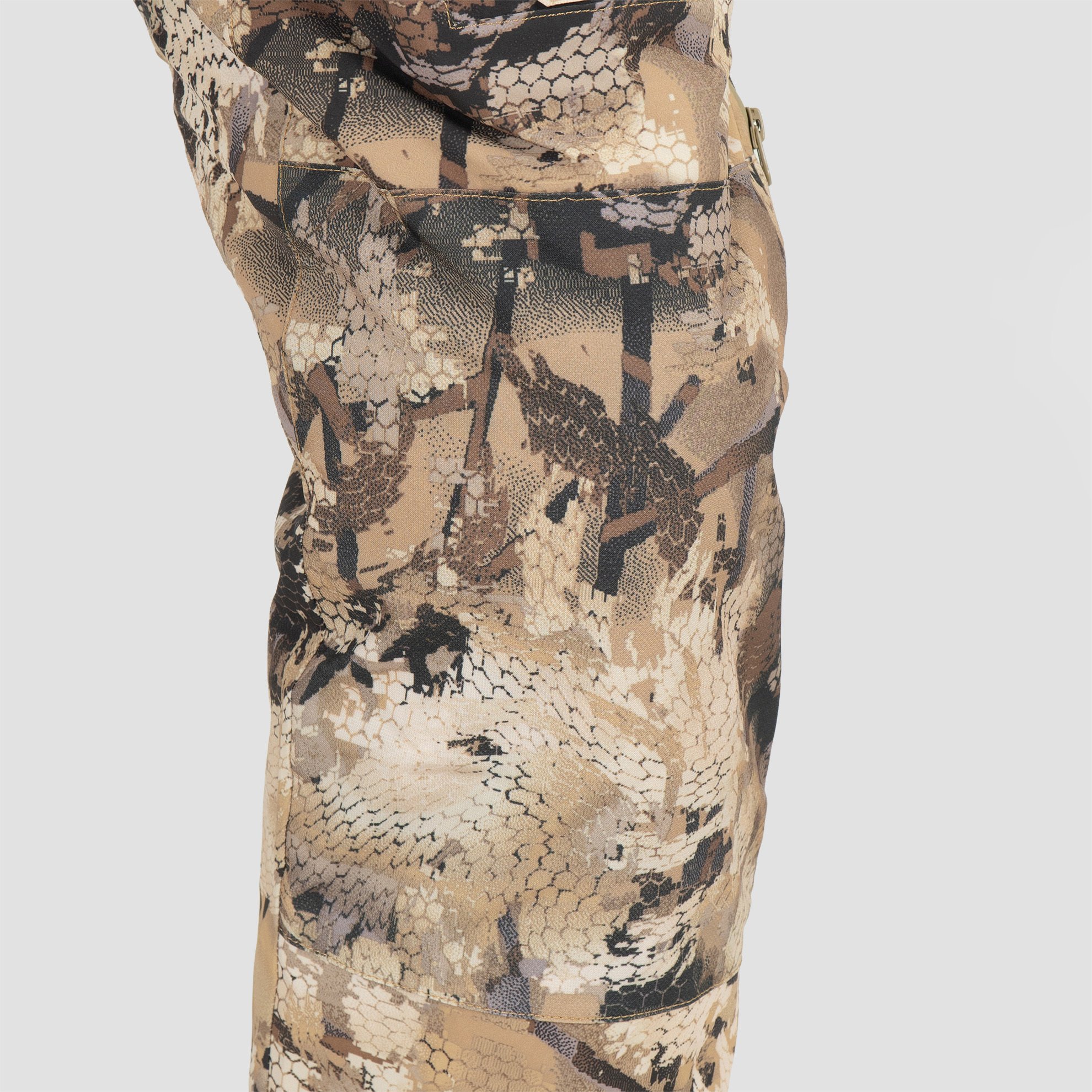 - Колени усилены износостойкой тканью в цвет камуфляжа костюма;
