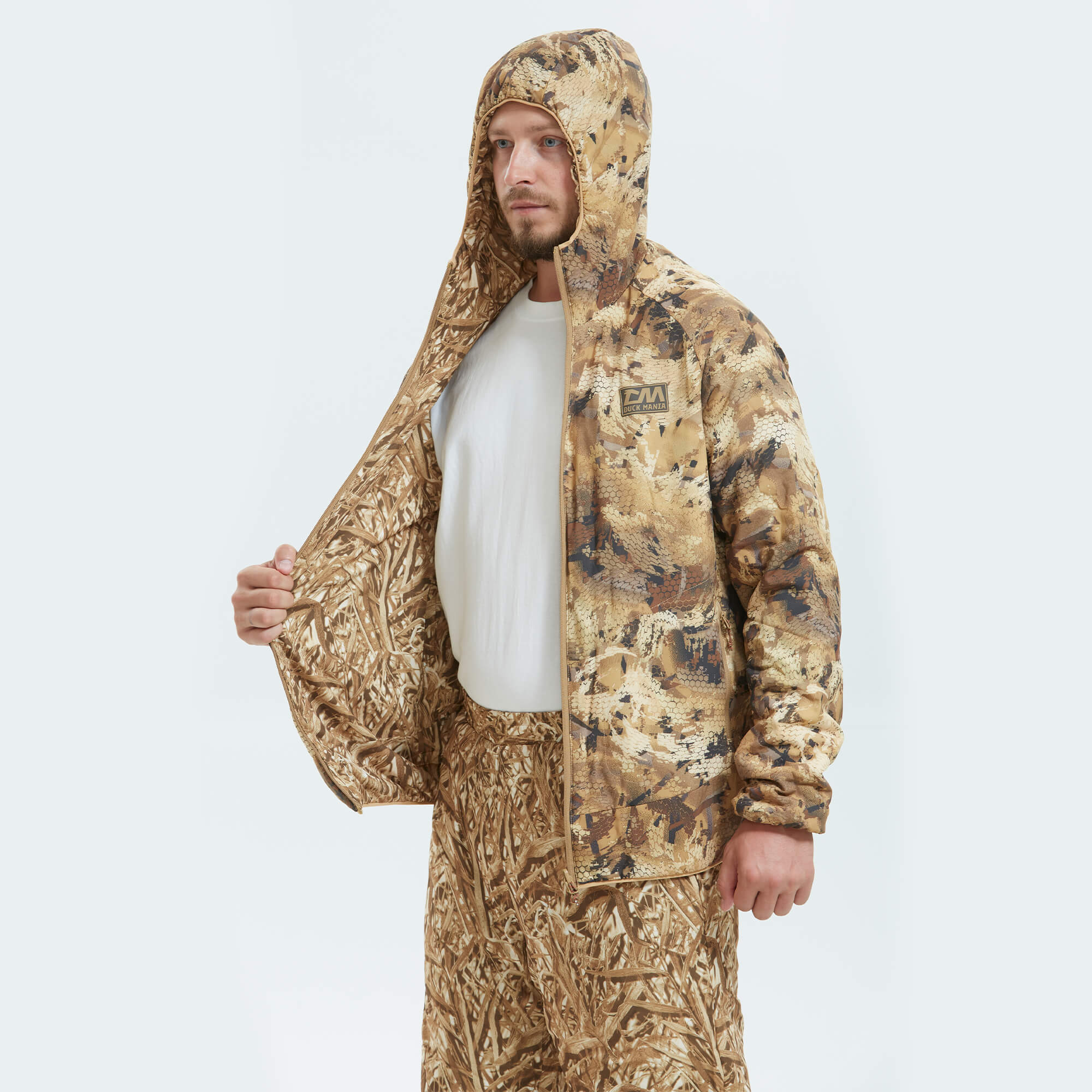Особенность костюма — возможность носить его как с основной, так и с обратной стороны, что дает два разных камуфляжных цвета для лучшей маскировки в разных условиях. Это делает его универсальным решением для любого сезона и типа охоты.