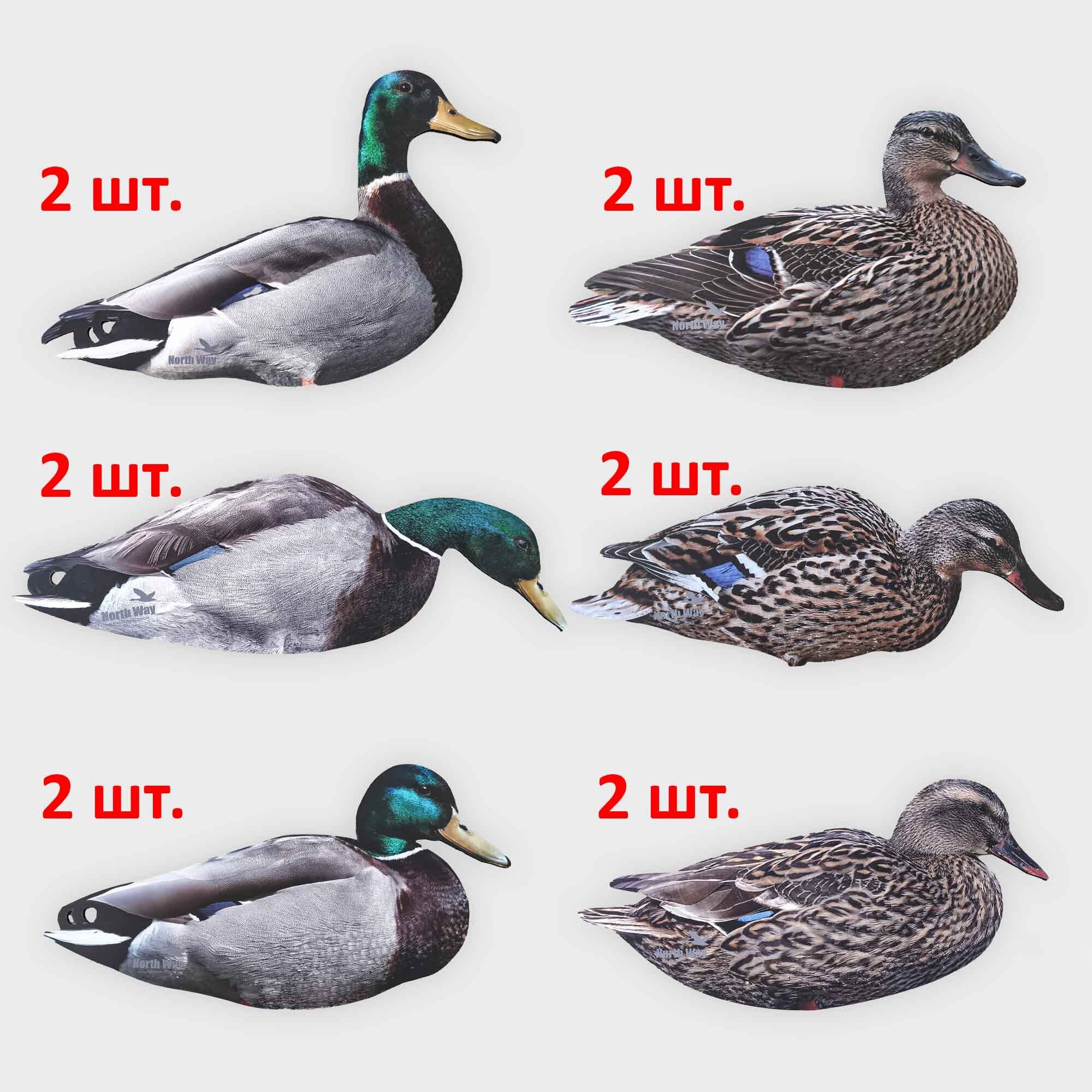 В комплекте 12 уток. Качественная, реалистичная, матовая фотопечать высокого разрешения. Поликарбонат черного цвета. Металлическая стойка покрытая матовой краской. Компактные и легкие