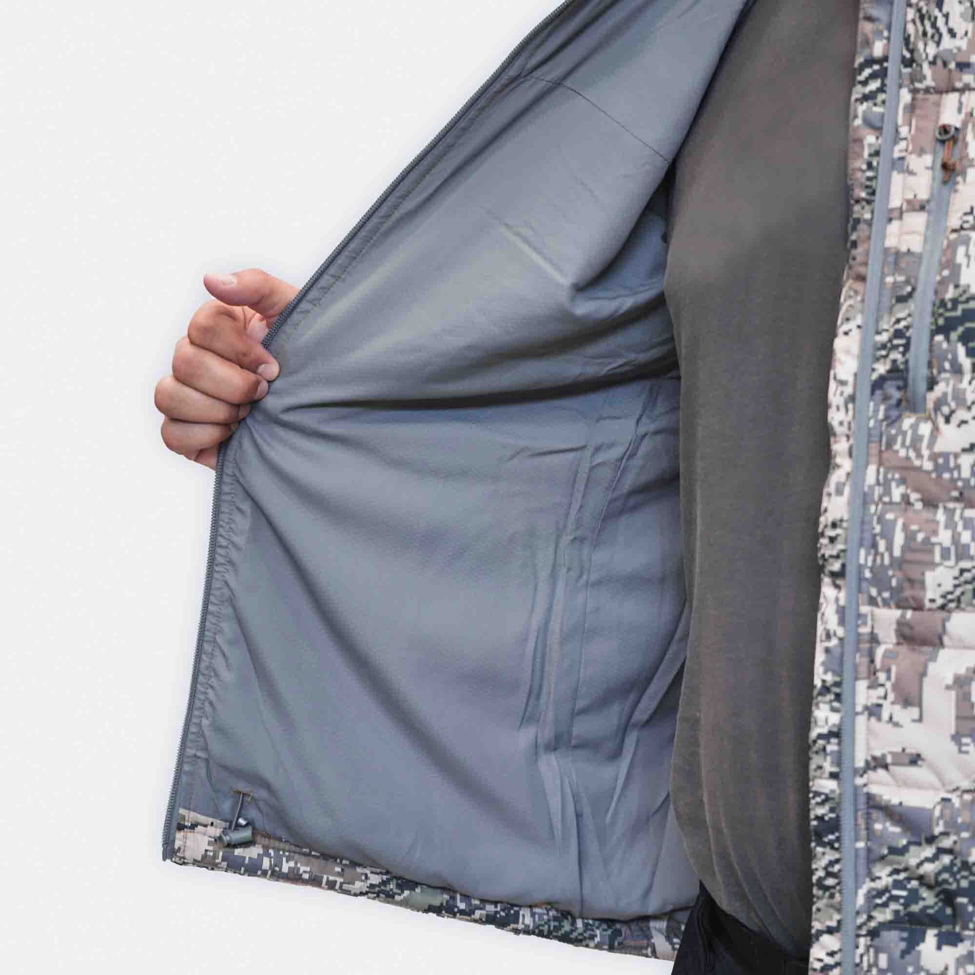Куртка выполнена из премиального полиэстера soft touch приятного для прямого контакта с кожей и обработанного DWR пропиткой для защиты от грязи и влаги. Может быть использован как самостоятельный слой при температурах от +10 до -5 градусов окружающей среды, так и как промежуточный слой для более низких температур. Например, в сочетании с костюмом Jaguar LT планка используемых температур может достигать -30С. Современный утеплитель Thermoloft влагостойкий силиконизированный стойкий к смятиям. Оснащен качественной фурнитурой.