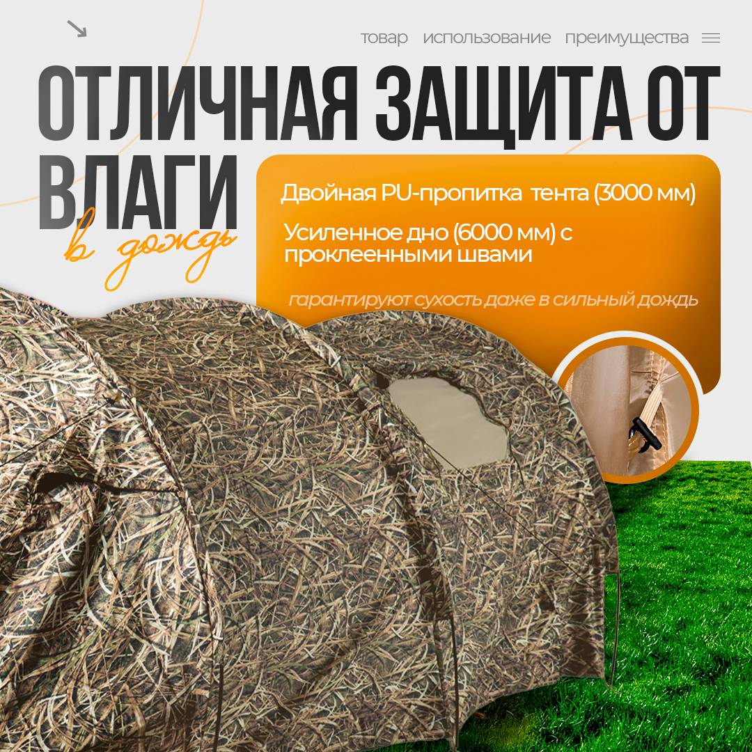 - Тент: Oxford (полиэстер 150D) с обработкой DWR и двойной PU пропиткой