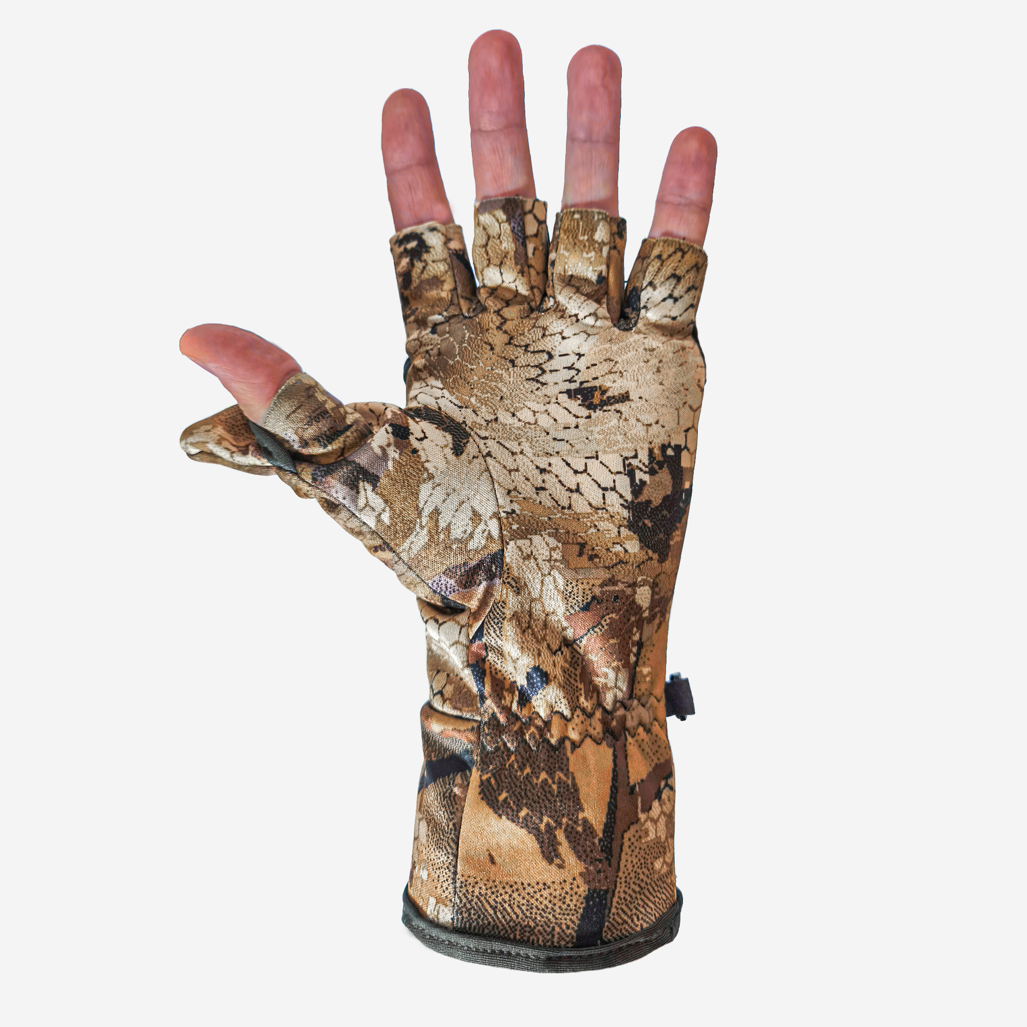 Перчатки отлично защищают от ветра и влаги при этом дышат. Варежки быстро и удобно трансформируются в перчатки без пальцев, конструкция позволяет стрелять из оружия, или нанизывать приманку на крючок не снимая варежек.