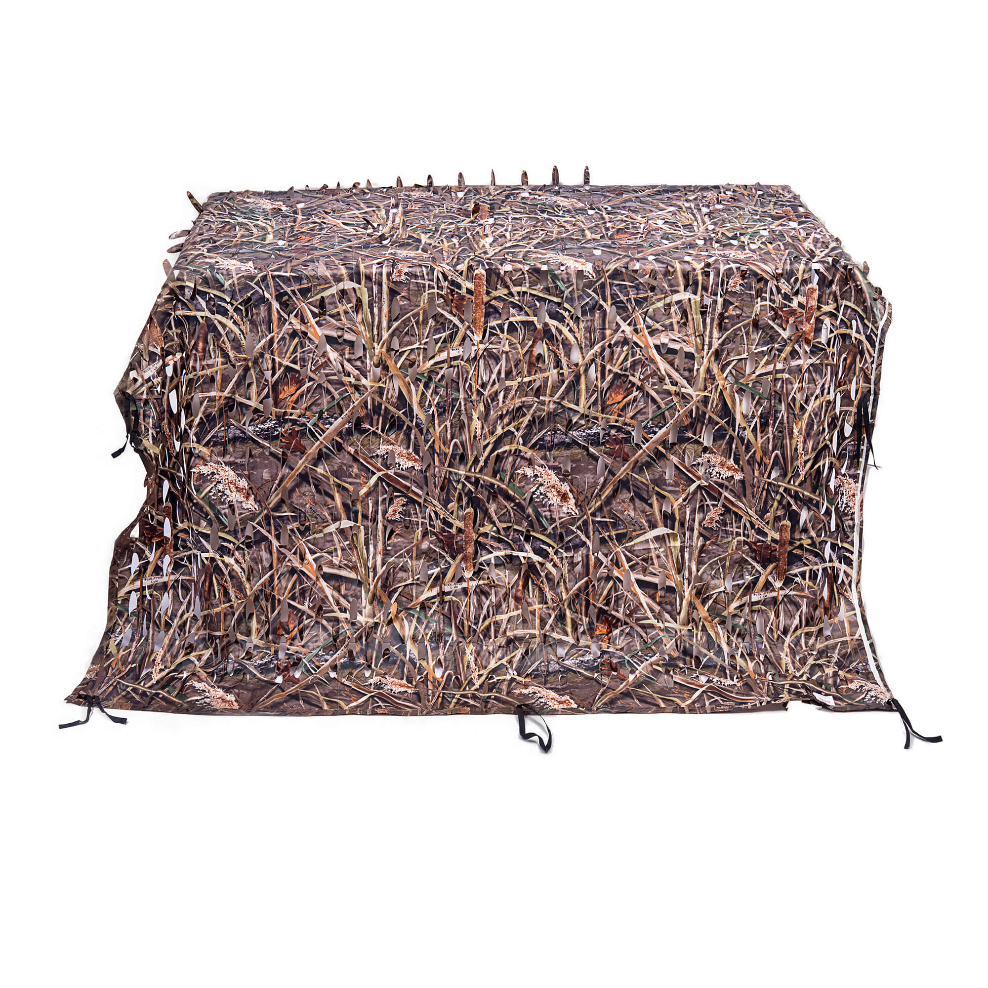 Сеть выполнена с лазерной перфорацией — отверстия в форме листьев растительности создают реалистичный камуфляжный рисунок, сливающийся с окружающей местностью. Такая структура не только отлично маскирует, но и позволяет вести наблюдение в скрытном режиме, не нарушая укрытия.