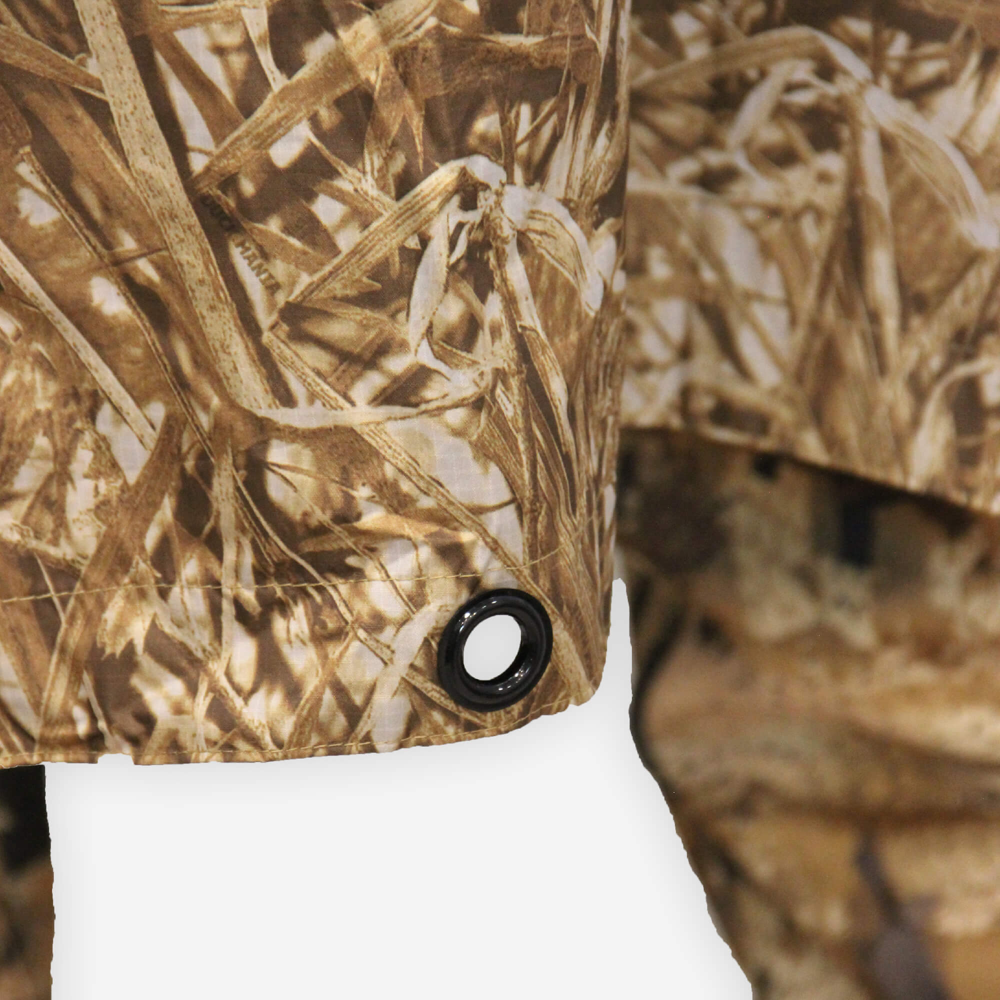 Пончо изготовлено из ткани Ripstop и проклеенных швов с технологией двойной обработки PU. Пончо прочный, с проклеенными швами, легкий и компактный. Ткань Ripstop представляет собой легкую прочную синтетическую ткань, широко используемую в производстве военных дождевиков западными странами, благодаря своим характеристикам. Пончо — это многофункциональный предмет с кнопками по бокам для использования в качестве пончо и люверсами на кромке для использования в качестве укрытия или наземного покрытия.