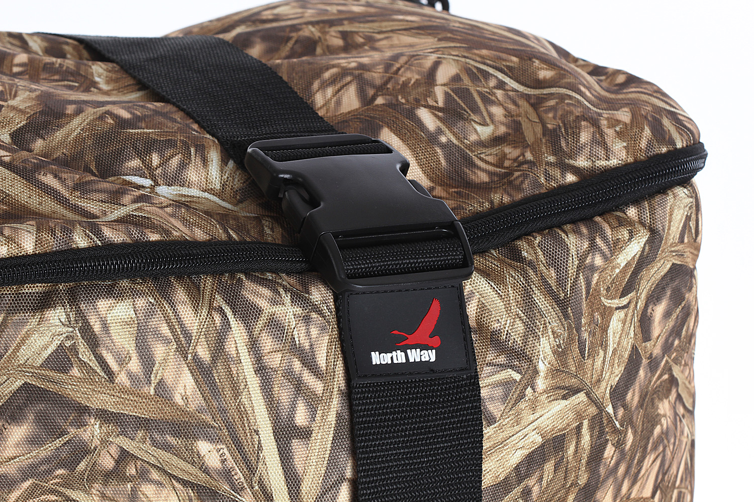 Объём 100 литров позволяет разместить до 48 сминаемых чучел North Way S‑XPE, при этом рюкзак остаётся удобным для переноски даже на большие расстояния.