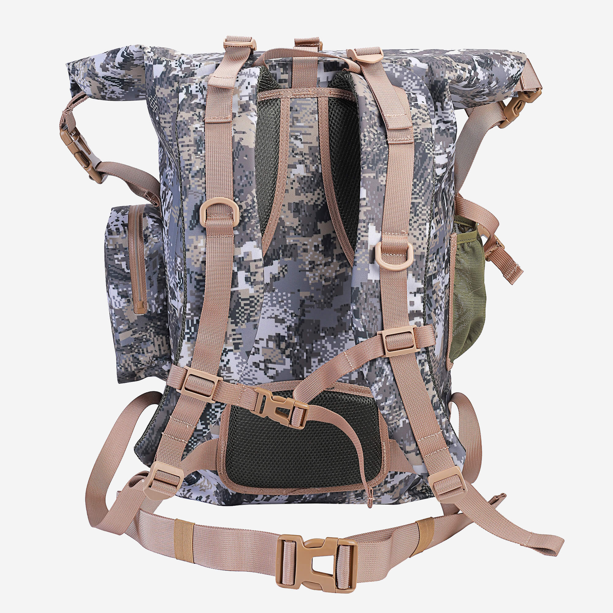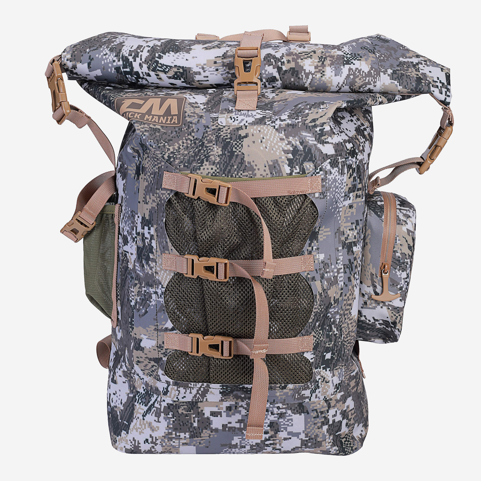 Водонепроницаемый рюкзак для охоты Duck Mania. Объем рюкзака 45 литров. Выполнена из современного, прочного, легкого и водонепроницаемого материала TPU. Выдерживает большие нагрузки, нежели резина, эластичнее в два раза, прочнее в два раза, легко восстанавливается после деформации. Данный материал не реагирует на масла, не сцепляется с грязью и изнашивается в три раза медленнее. Качественная и высокопрочная фурнитура подобрана специальная для суровых условий эксплуатации. Спина рюкзака имеет мягкие накладки. Плечевые ремни усилены и дополнительно вшиты мягкие накладки для удобства переноски. Поясной ремень имеет усиленные фастексы. На внешней стороне расположен сетчатый карман на утяжках. Сбоку рюкзака имеется отдельный карман на влагозащитной молнии. Рюкзак отлично подходит для переноски мяса, а также для снаряжения в условиях повышенной влажности. Рекомендована для охотников и рыболовов. Испытана охотниками России!