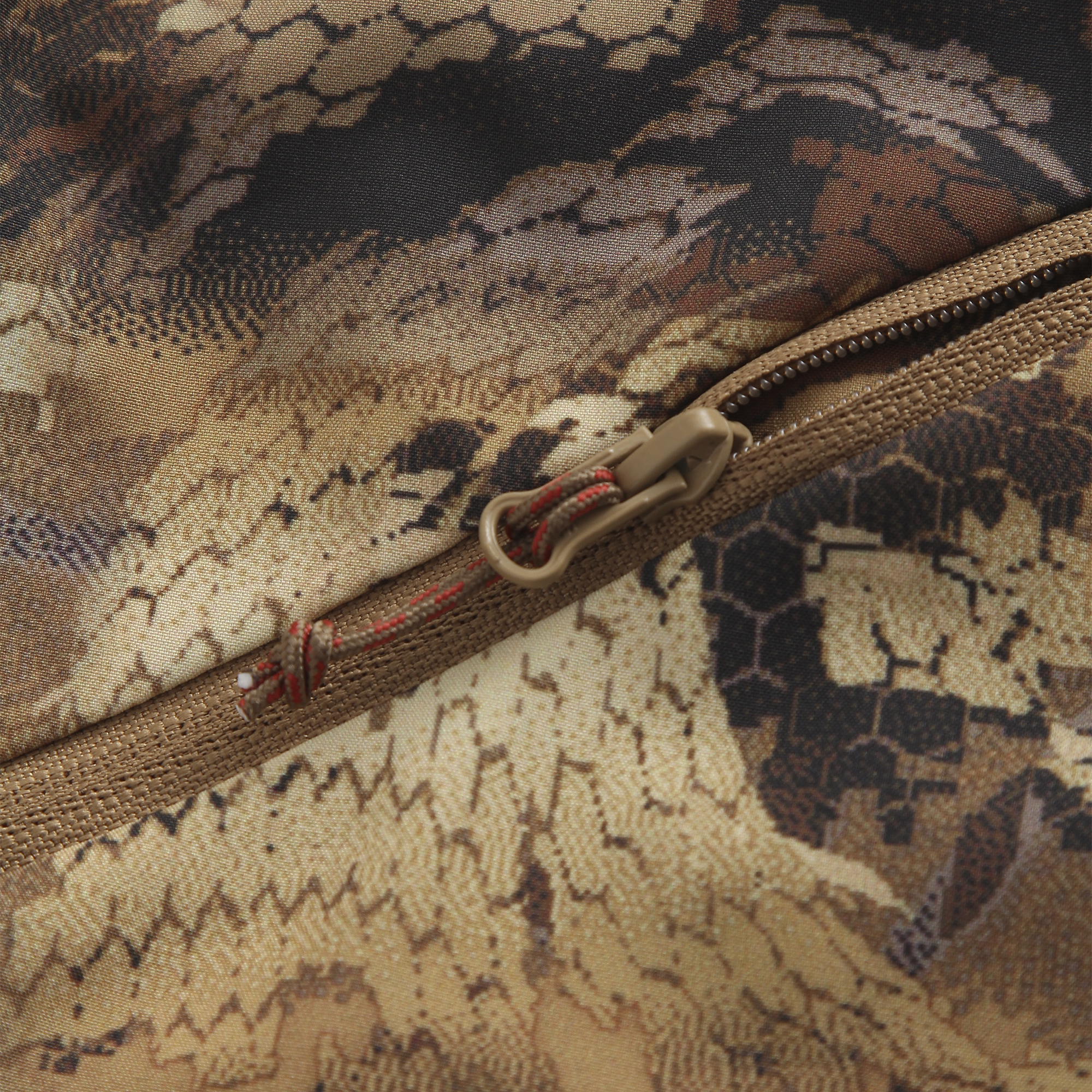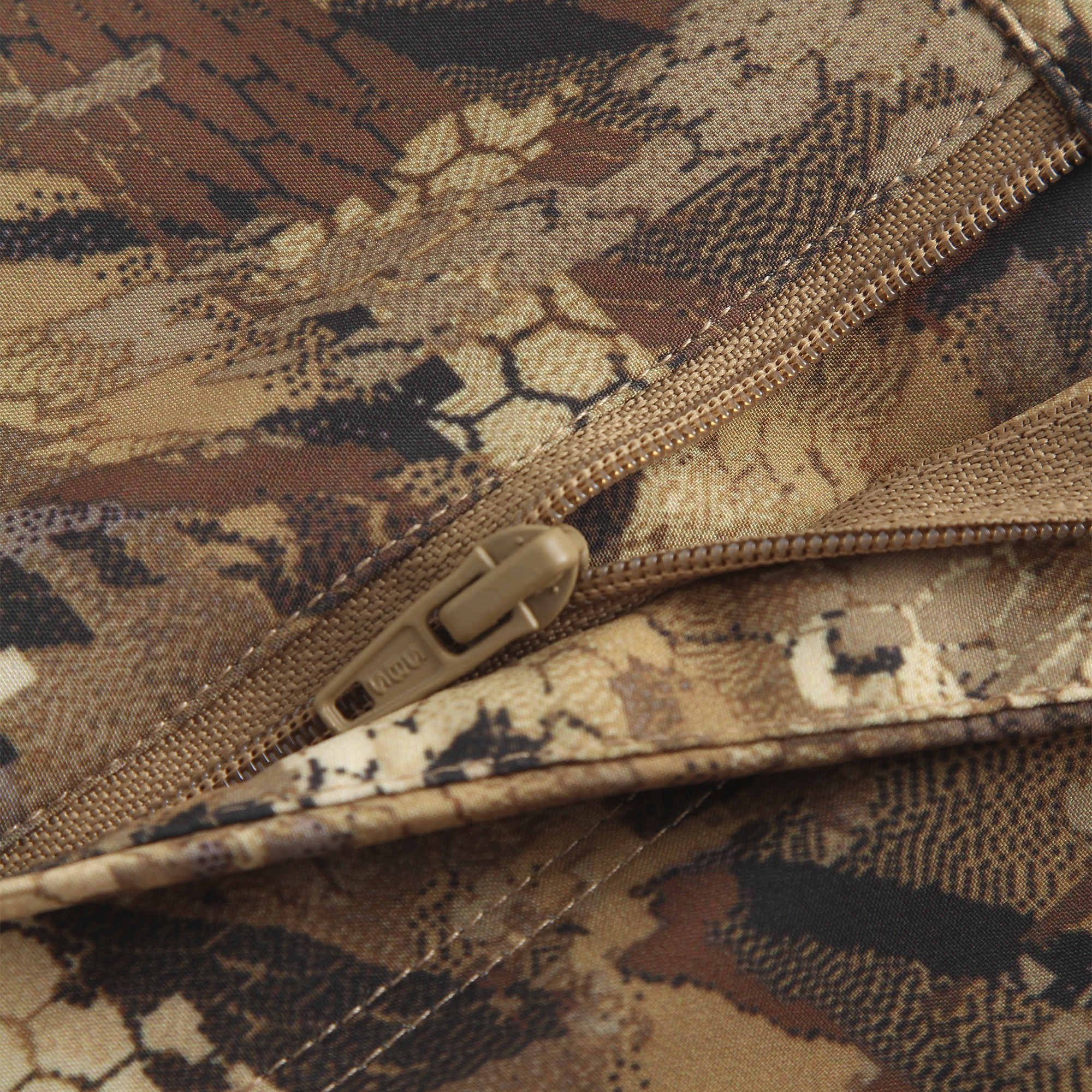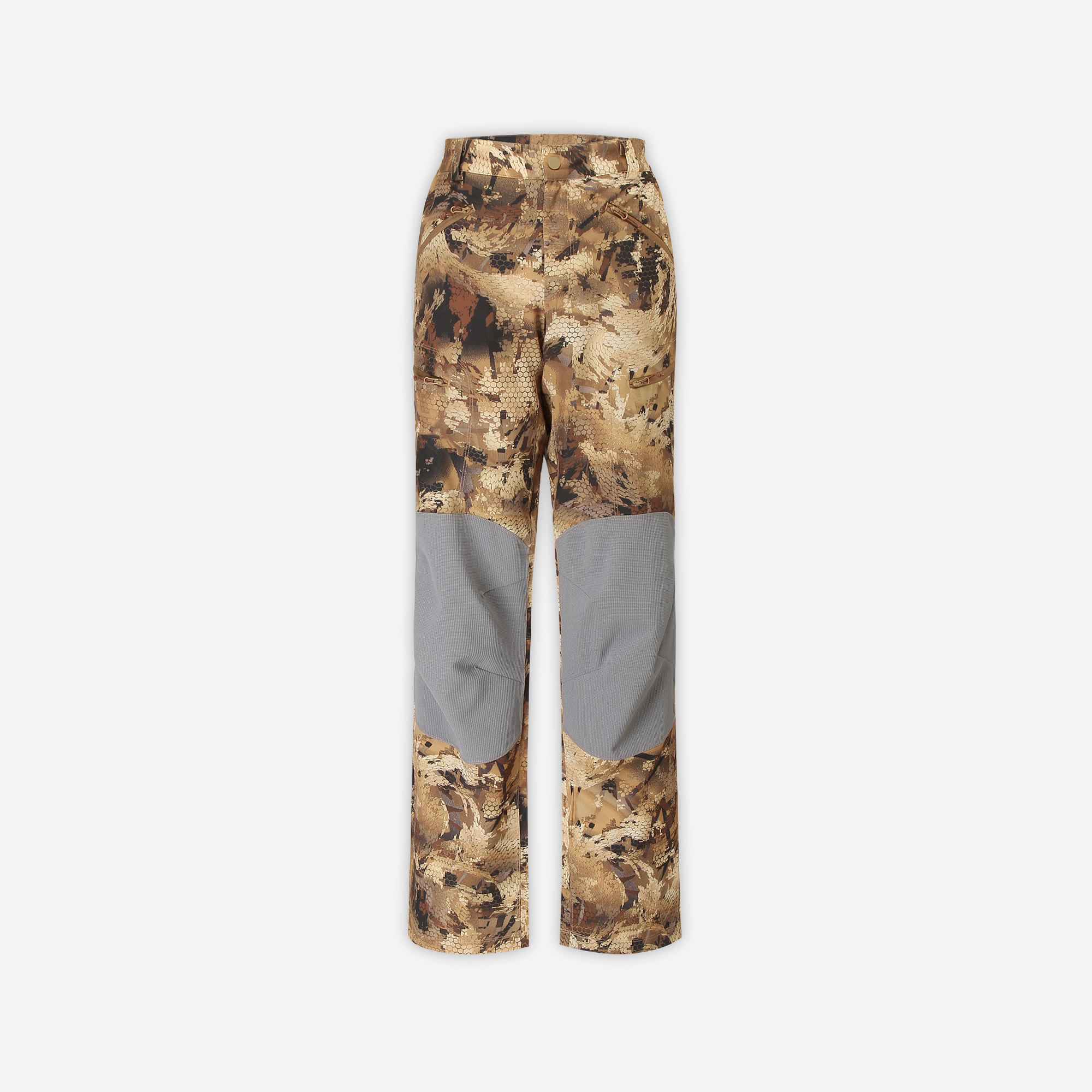 Зоны коленей и ягодиц усилены прочной тканью rip stop — это повышает износостойкость при ходьбе по камням, работе в засидке или частых приседаниях. Материал устойчив к прокусам комаров, что особенно актуально на летней рыбалке и охоте на байбака. Водоотталкивающая пропитка DWR защищает от лёгких осадков, росы и грязи.
