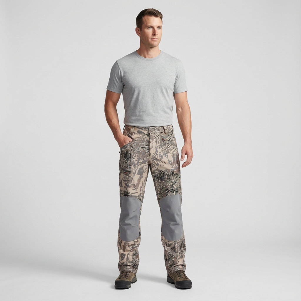 Зоны коленей и ягодиц усилены прочной тканью rip stop — это повышает износостойкость при ходьбе по камням, работе в засидке или частых приседаниях. Материал устойчив к прокусам комаров, что особенно актуально на летней рыбалке и охоте на байбака. Водоотталкивающая пропитка DWR защищает от лёгких осадков, росы и грязи.