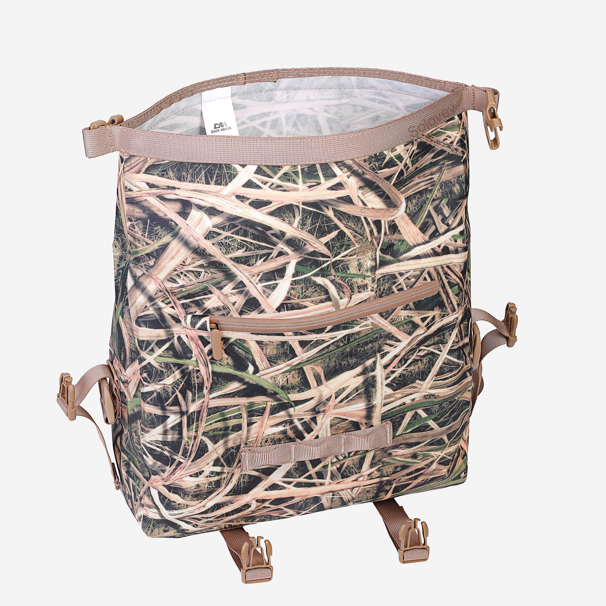 Водонепроницаемая сумка для охоты Duck Mania. Выполнена из современного, прочного, легкого и водонепроницаемого материала TPU. Выдерживает большие нагрузки, нежели резина, эластичнее в два раза, прочнее в два раза, легко восстанавливается после деформации. Данный материал не реагирует на масла, не сцепляется с грязью и изнашивается в три раза медленнее. Качественная и высокопрочная фурнитура подобрана специальная для суровых условий эксплуатации. Ремень для переноски сумки можно регулировать по длине, а также имеет мягкую накладку для удобства переноски. С внешней стороны сумки имеется да кармана на влагозащищенной молнии. На основном клапане имеется большой карман на влагозащищённой молнии. Внутри сумки два сетчатых кармана. Рекомендована для охотников и рыболовов.