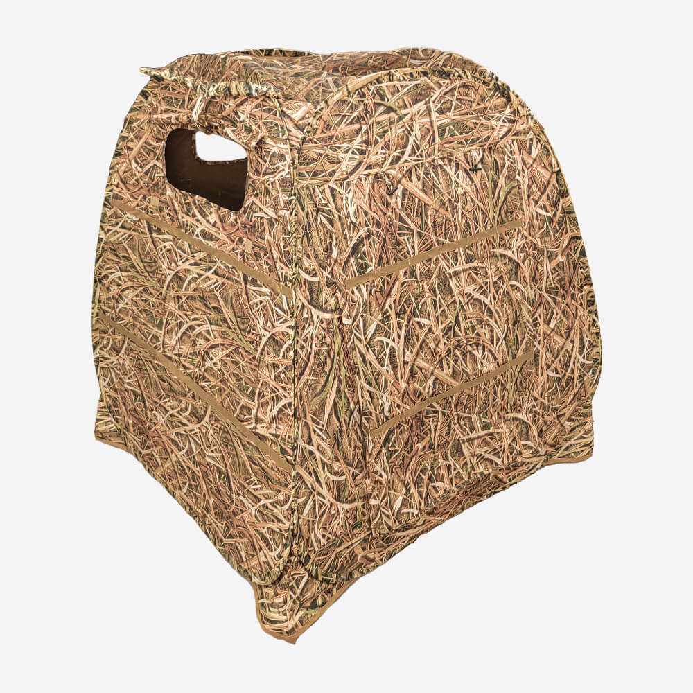 Компактная и легкая засидка на одного человека для охоты на гусей и уток. Имеет автоматическую конструкцию с откидным верхом-сеткой для прицельной стрельбы. За счет такой конструкции можно иметь обзор в 360 градусов и быть полностью замаскированным. Из реального опыта может быть использована, как без маскировки из местной растительности как и с ней, все зависит от запрессованности региона и реакции птицы.