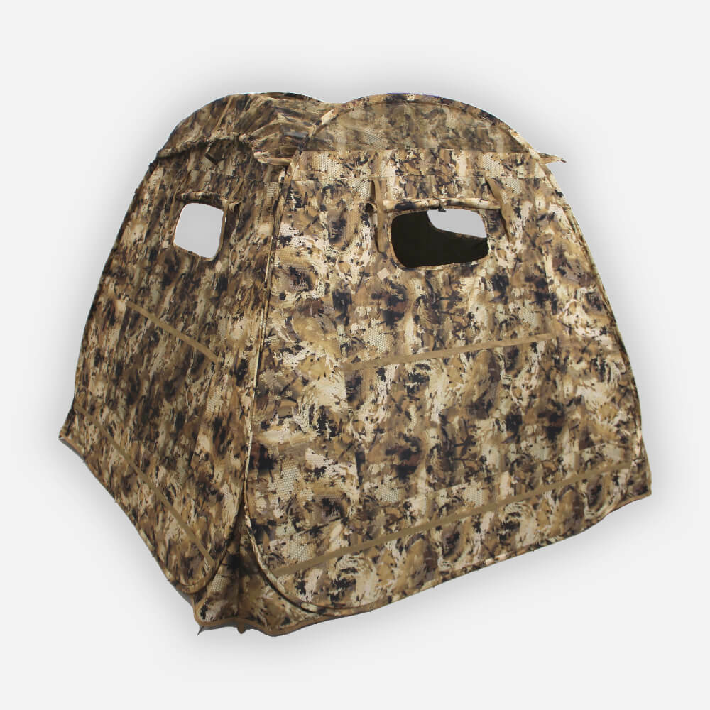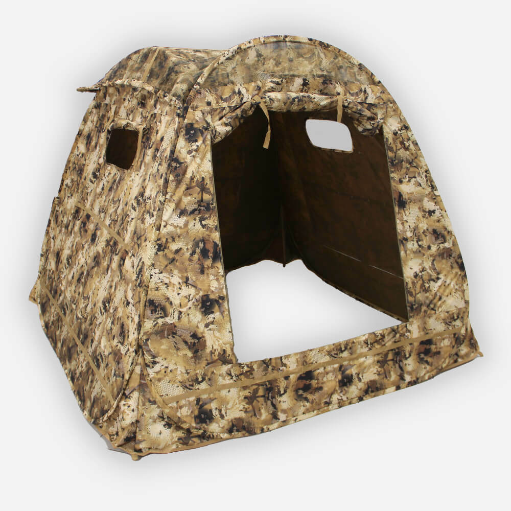 Компактная и легкая засидка с автоматической конструкцией и откидной сеткой-верхом. В засидке могут свободно разместиться охотник любой комплекции в сидячем положении и собака. В комплект входят крыша для защиты от осадков, растяжки и колышки для стабилизации засидки на ветру. Вход через «дверь» на молнии, по 3 остальным сторонам расположены бойницы со шторками. Удобная высота порога, чтобы не спотыкаться при входе явное отличие от конкурентов, так как мы испытываем наши палатки в реальных охотах и знаем, что и как нужно делать.