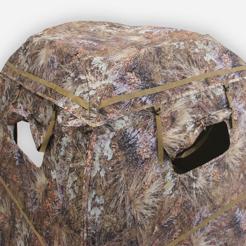 Компактная и легкая засидка с автоматической конструкцией и откидной сеткой-верхом. В засидке могут свободно разместиться охотник любой комплекции в сидячем положении и собака. В комплект входят крыша для защиты от осадков, растяжки и колышки для стабилизации засидки на ветру. Вход через «дверь» на молнии, по 3 остальным сторонам расположены бойницы со шторками. Удобная высота порога, чтобы не спотыкаться при входе явное отличие от конкурентов, так как мы испытываем наши палатки в реальных охотах и знаем, что и как нужно делать.