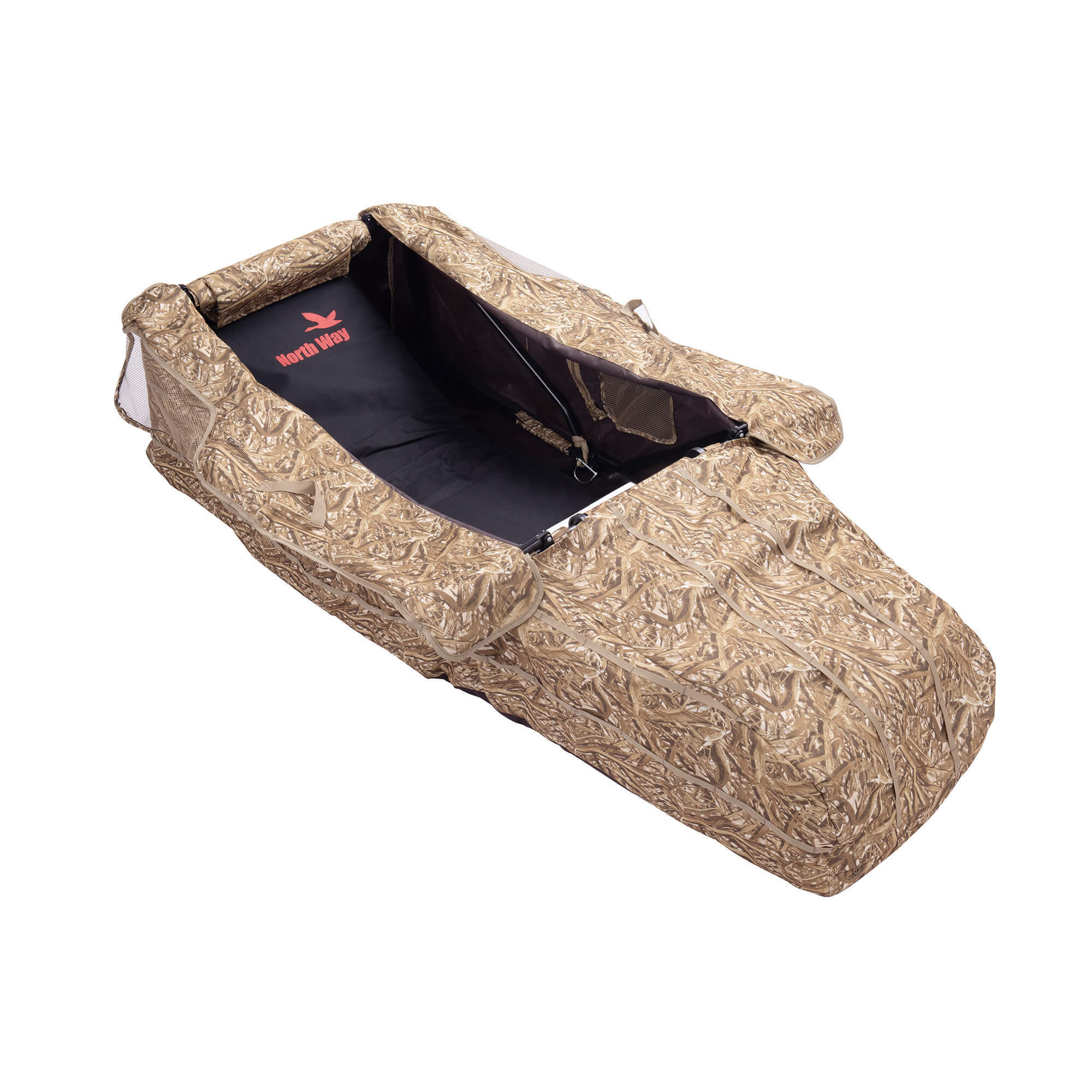 Прочная рама из алюминиевого сплава обеспечивает стабильность и легкость конструкции. Засидка оборудована распашными створками, которые открываются без сопротивления, давая возможность мгновенно прицелиться при вылете птицы.