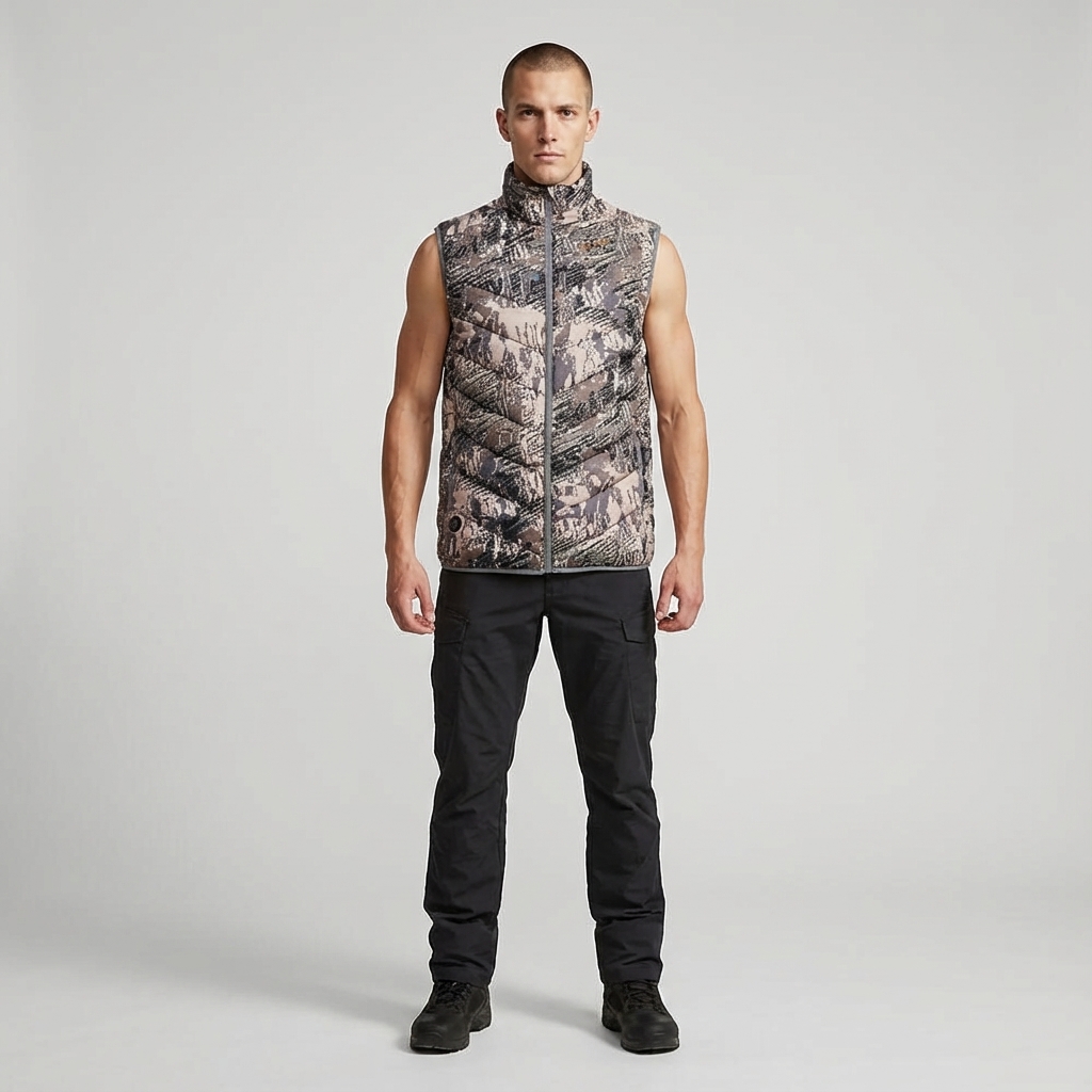 В качестве утеплителя используется современный Thermoloft, поэтому жилет хорошо греет даже без включённого подогрева. Облегающий крой обеспечивает максимальную эффективность нагрева и удобство ношения под верхней одеждой, не добавляя лишнего объёма. Модель идеально подходит для осенне‑зимних засидок, охоты из скрадка весной, рыбалки и любой статичной активности на морозе.